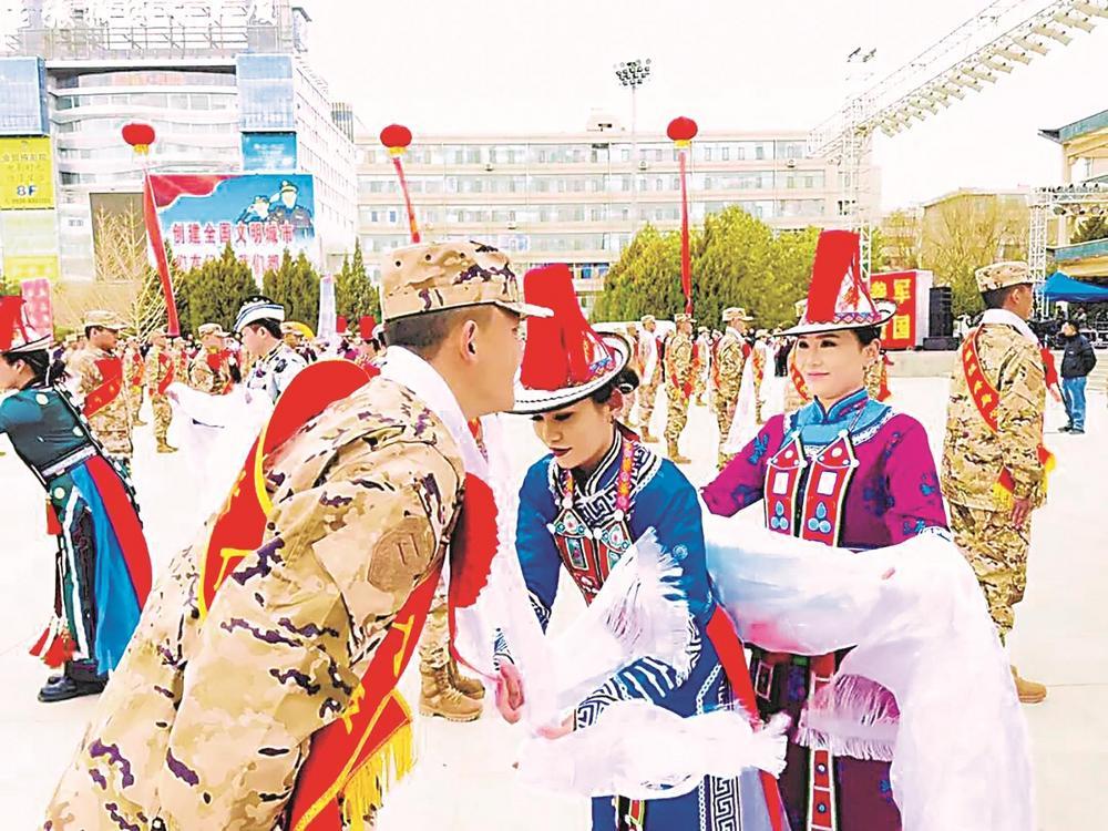 浓浓乡情寄嘱托,殷殷祝福伴征程。各县区家长代表和群众为新兵送上独具地方特色的祝福与慰问:肃南县群众代表敬献圣洁哈达,传递草原儿女的真挚祝愿;甘州区家长代表送上笔墨,寄望新兵文能提笔安天下、武能上马定乾坤;山丹县群众代表赠送剪纸马,祝愿新兵一马当先、马到成功;临泽县家长代表送上香甜红枣,寓意心连心、盼捷报;民乐县家长代表带来手工香囊和绣花鞋垫,饱含家人的思念与叮嘱;高台县家长代表端上热气腾腾的饺子,让新兵带着家的温暖奔赴军营。一份份饱含深情的礼物,将家乡人民的牵挂与关爱化作新兵前行的力量。