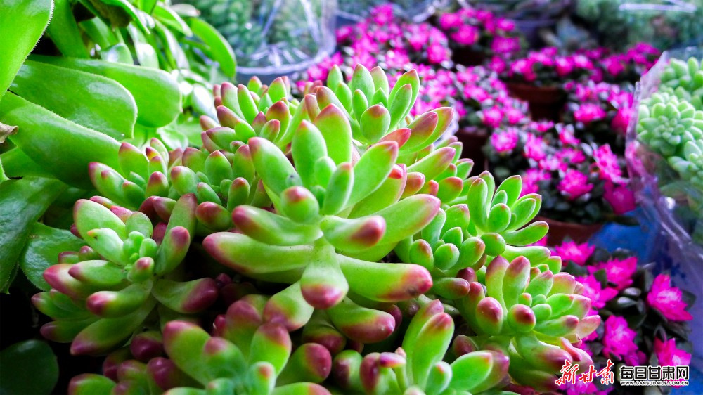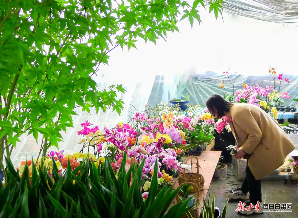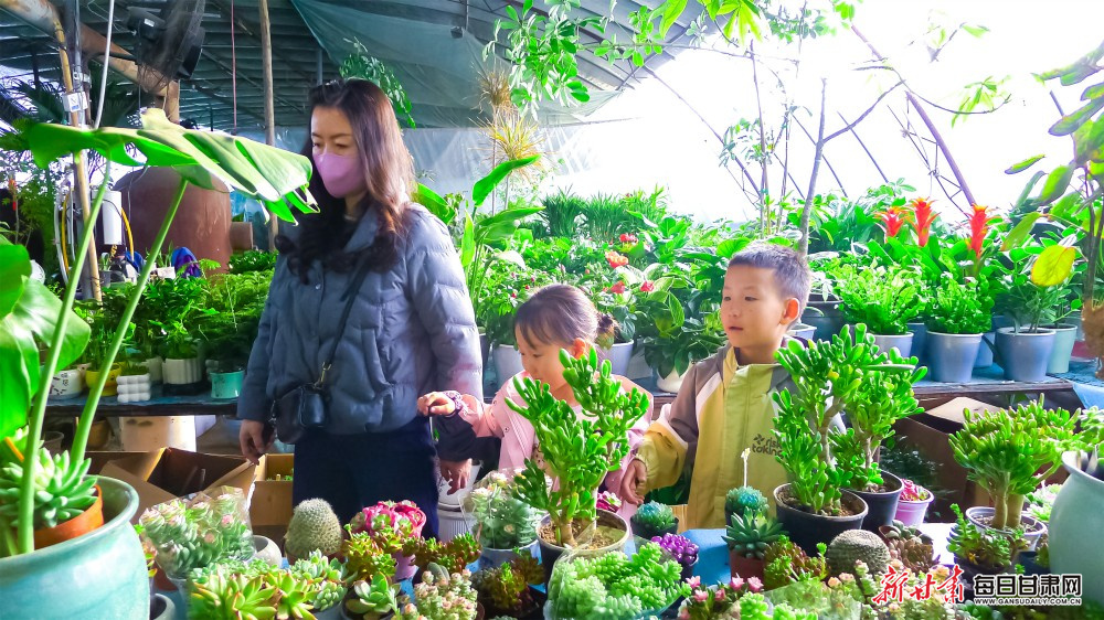 步入花圃,各色花卉错落有致、争奇斗艳,阵阵花香扑面而来。雅致的蝴蝶兰亭亭玉立,喜庆的红掌娇艳动人,挺拔的发财树绿意盎然,烂漫的长寿花清新悦目,缤纷花色与盎然绿意相映成趣,将园区装点成一片绚丽多姿的花的海洋,吸引不少市民前来赏花、选购,尽享敦煌春日里的别样芬芳。