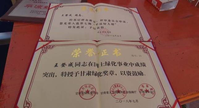 “当年村里的山,是光秃秃的荒坡,一到刮风天,黄沙漫天,地里的庄稼都被埋得看不见,老百姓苦得很。”老人坐在炕沿上,手里拿着一枚旧党徽,目光望向窗外的山林,思绪缓缓拉回过去。那时,他二十岁左右,怀着对党的无限忠诚,加入中国共产党。面对家乡荒山秃岭、百姓受风沙困扰的现状,年轻的王登成在党旗下默默许下誓言:要让双凤村的荒山变绿,要让乡亲们不再受风沙之苦。“树是大家的,我把树种好了,几辈人都能享福。”这句简单朴素的话,成了他一生的信念,如同种子般,在他心中深深扎根,指引着他走过六十八载风雨征程。
