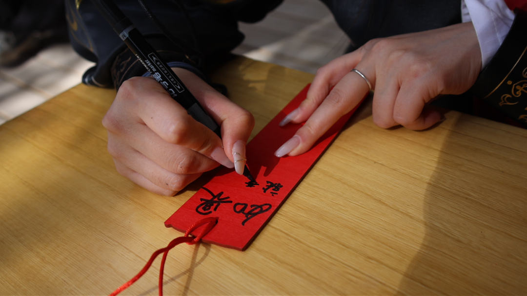 执一支笔墨,在祈福牌上写下“春安”“龙抬头吉”“春风度关”等美好吉语,以及对家国、家人的美好祝愿,一一镌刻。挂起祈福牌,愿春风载福,护岁月安澜。