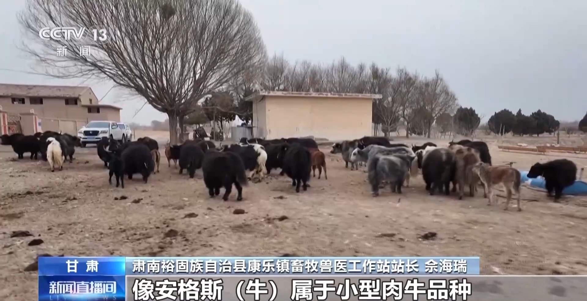 肃南裕固族自治县康乐镇畜牧兽医工作站站长 佘海瑞:我们以肃南牦牛母牛为母本,与比较优质的种公牛进行杂交,像安格斯牛属于小型肉牛品种,娟姗牛属于小型奶牛品种,西门塔尔牛是大型肉牛。杂交品种主要能体现杂交优势,既能体现母本适应高寒的能力,还能体现出父本的一些生产性能特点。