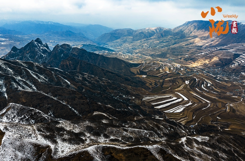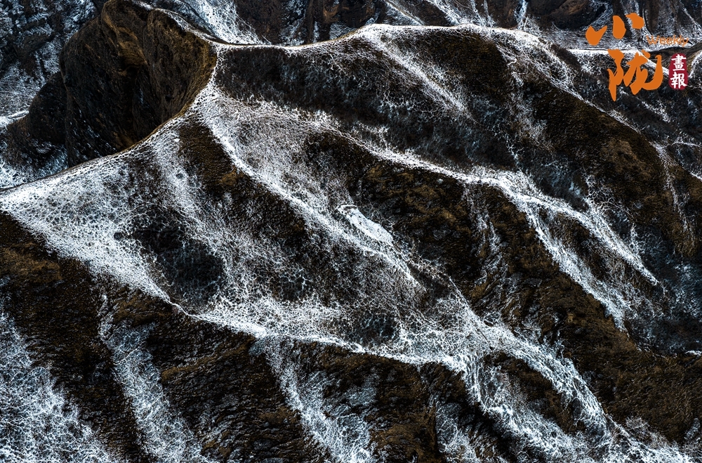 春雪覆上丹霞,用那一抹温润的白,轻柔地勾勒出山峦起伏的轮廓。白黑交织间,丹霞少了些棱角的凌厉,多了几分被春雪浸润的柔情,宛如天地为自己留下的一笔诗意。