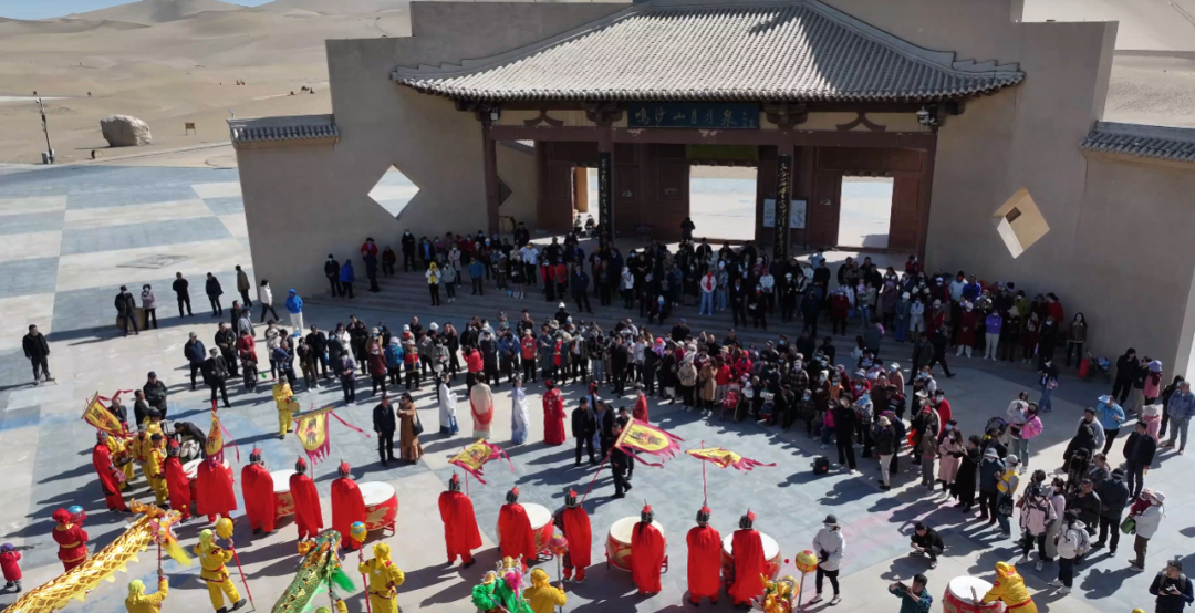 春龙昂首,福启沙泉!二月二龙抬头,鸣沙山月牙泉最佳拍摄点活力上演舞龙健身展演。专业舞龙队腾跃盘旋,将传统民俗与全民健身相融,气势昂扬、动感十足。在大漠春光里共赏龙腾盛景,感受非遗活力,汲取春日健康元气。