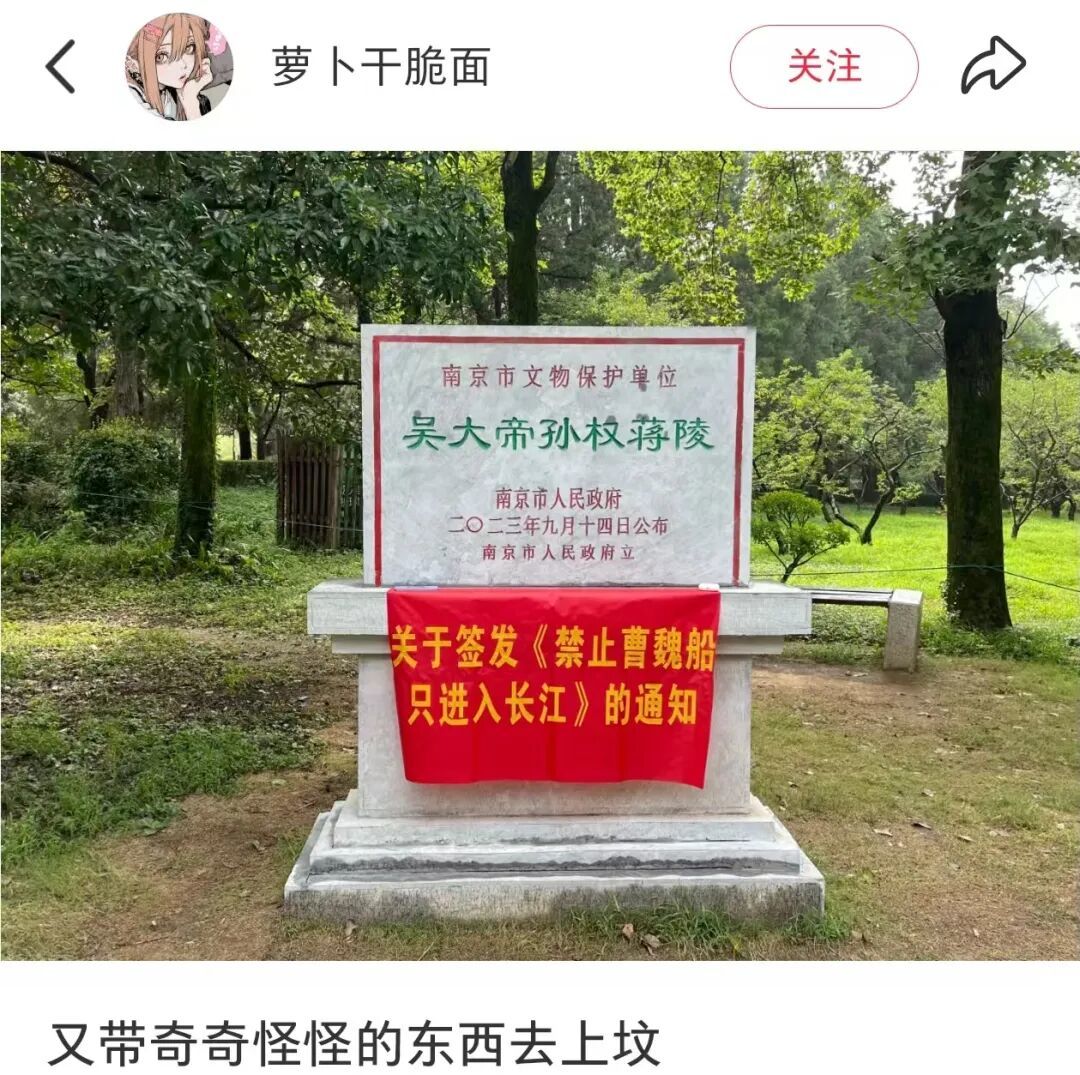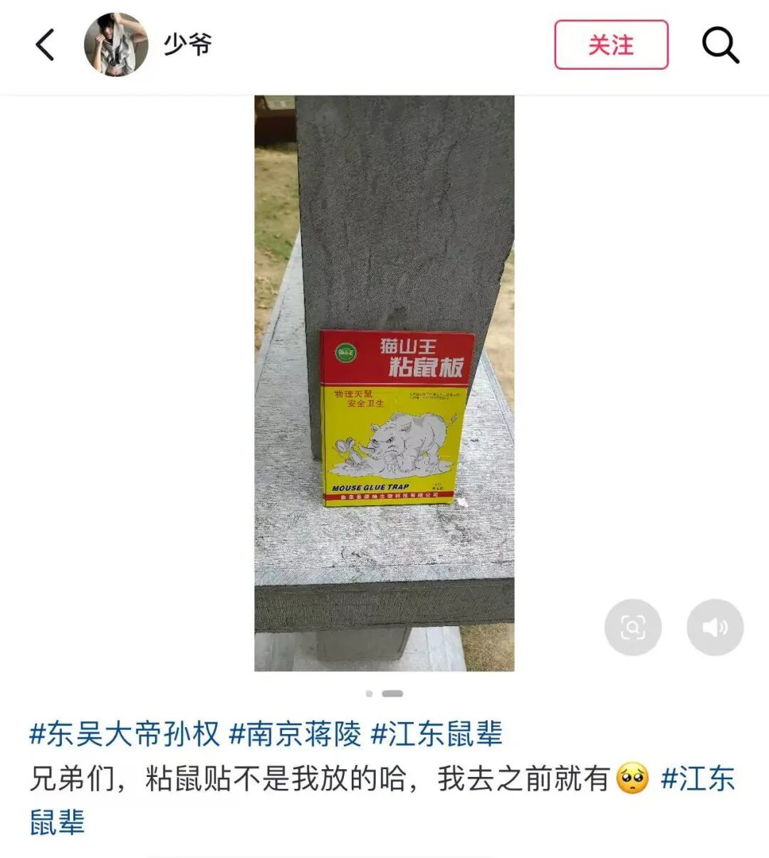 如果说曹操、诸葛亮的供品是温柔,那孙权墓前的供品,就是网友们的“精准玩梗”。墓前放着两样东西:粘鼠板和张辽卡片,堪称“制裁套餐”。