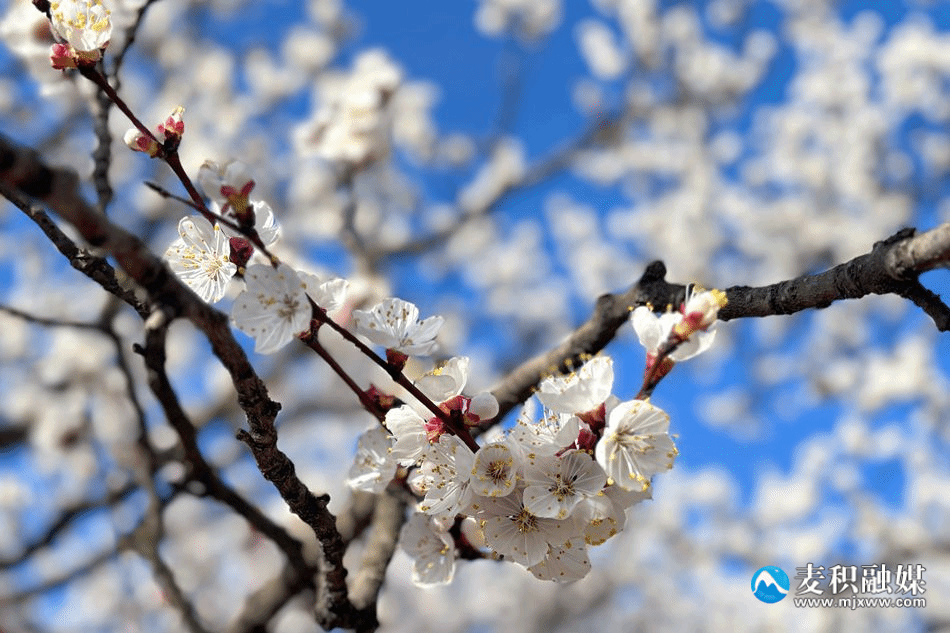 麦积区新阳镇万亩杏林:在新阳镇的千亩杏花林内,粉白色的杏花挂满枝头,3000亩杏林沿山势绵延,如云霞铺展,吸引众多游客前来打卡拍照。