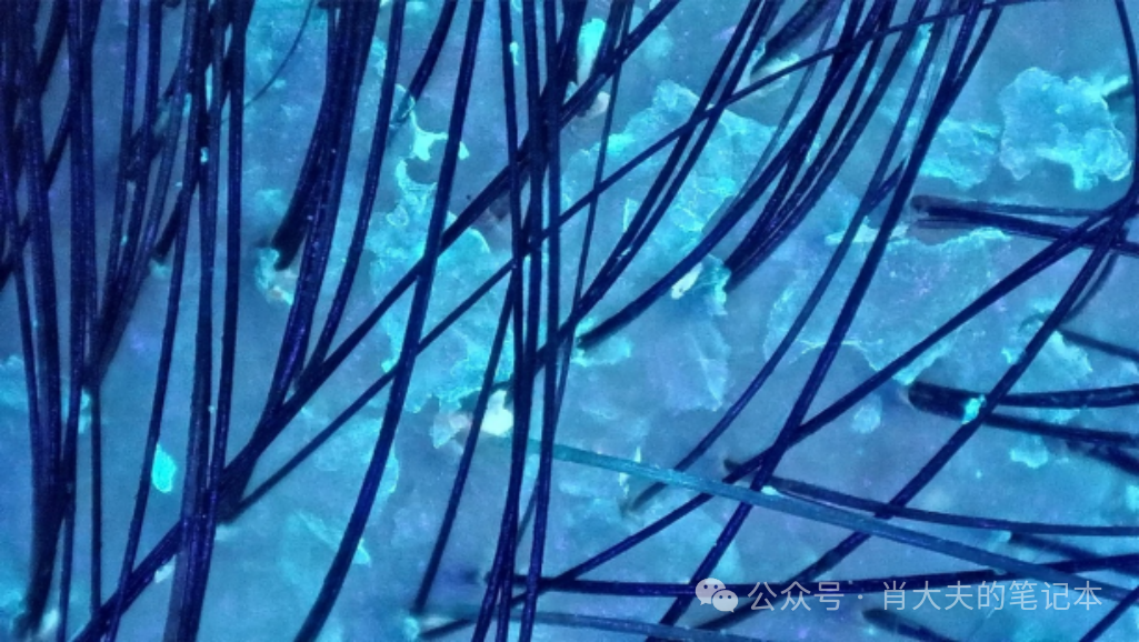 下面放张频繁洗头的头皮镜图给大家看,头皮会产生大量头屑有部分原因就是感知到损伤的信号,哪来的损伤?频繁洗头造成的。