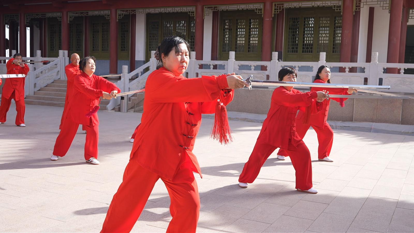 活动现场,全体人员齐聚一堂,共同演练统一套路24式简化太极拳,整齐划一的动作、沉稳内敛的气韵,不仅展现了太极拳“以柔克刚、以静制动”的独特魅力,更传递出敦煌市民追求健康、乐享生活的积极理念。在展示环节,各太极代表队轮番登场、各展风采。42式太极拳竞赛套路行云流水,太极剑身姿矫健、锋芒暗藏,太极扇开合间灵动飘逸,爱好者们以娴熟的技法、饱满的热情,将太极文化的深厚底蕴与多样表现形式展现得淋漓尽致。此次展示不仅全面呈现了敦煌市太极拳运动的普及成果与多元魅力,更彰显了广大群众对中华优秀传统文化的热爱与传承初心。