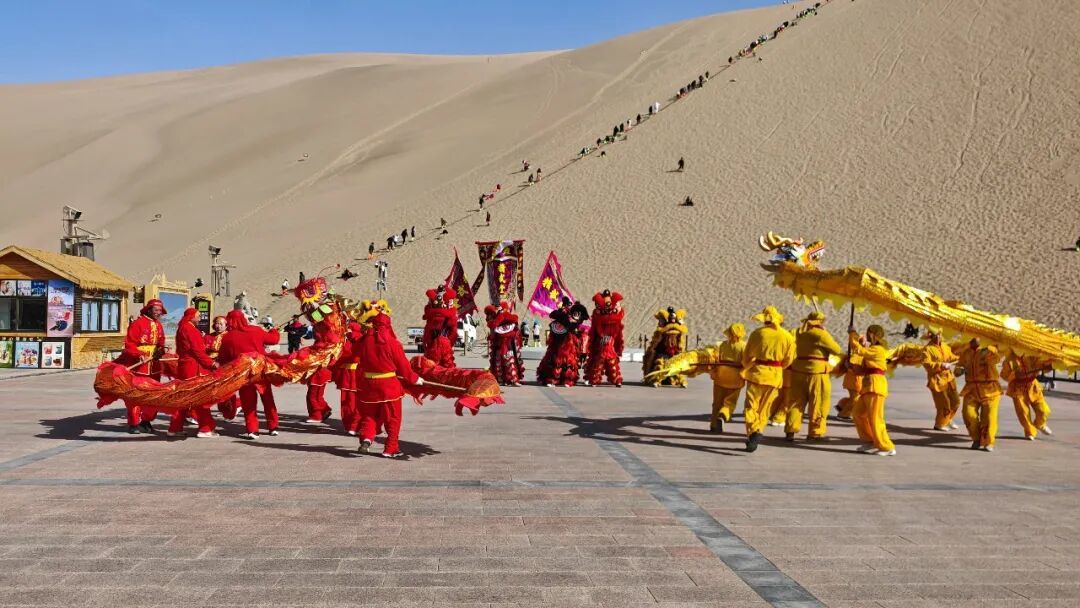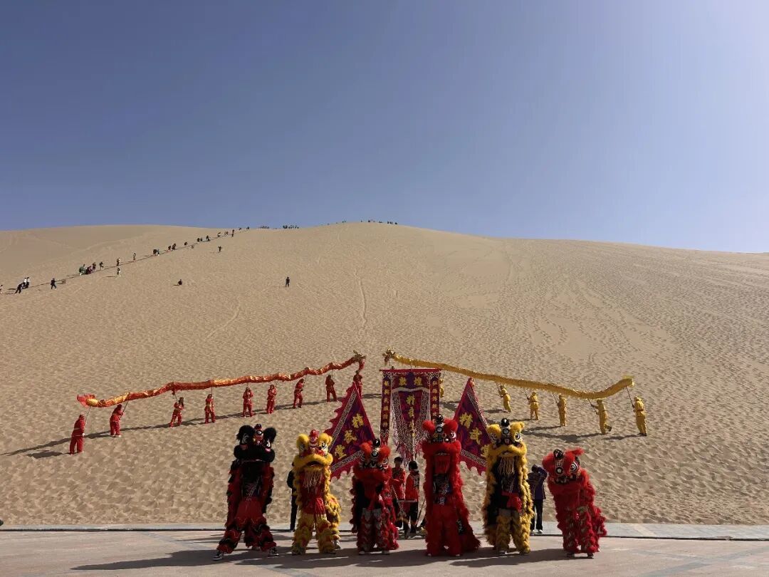 春分恰逢龙抬头,双节共赏民俗韵。3月20日,由敦煌市文旅局联合鸣沙山月牙泉景区精心策划的“春龙抬头·春分同行——千年敦煌民俗游园”活动在鸣沙山月牙泉景区精彩启幕。敦煌精武堂龙狮团、《又见敦煌》、《乐动敦煌》演艺团队、敦煌市旗袍协会、敦煌市舞龙协会等单位联袂呈现,将敦煌特色文化与传统民俗节气深度融合,让八方游客沉浸式邂逅丝路古城的春日浪漫与民俗魅力。