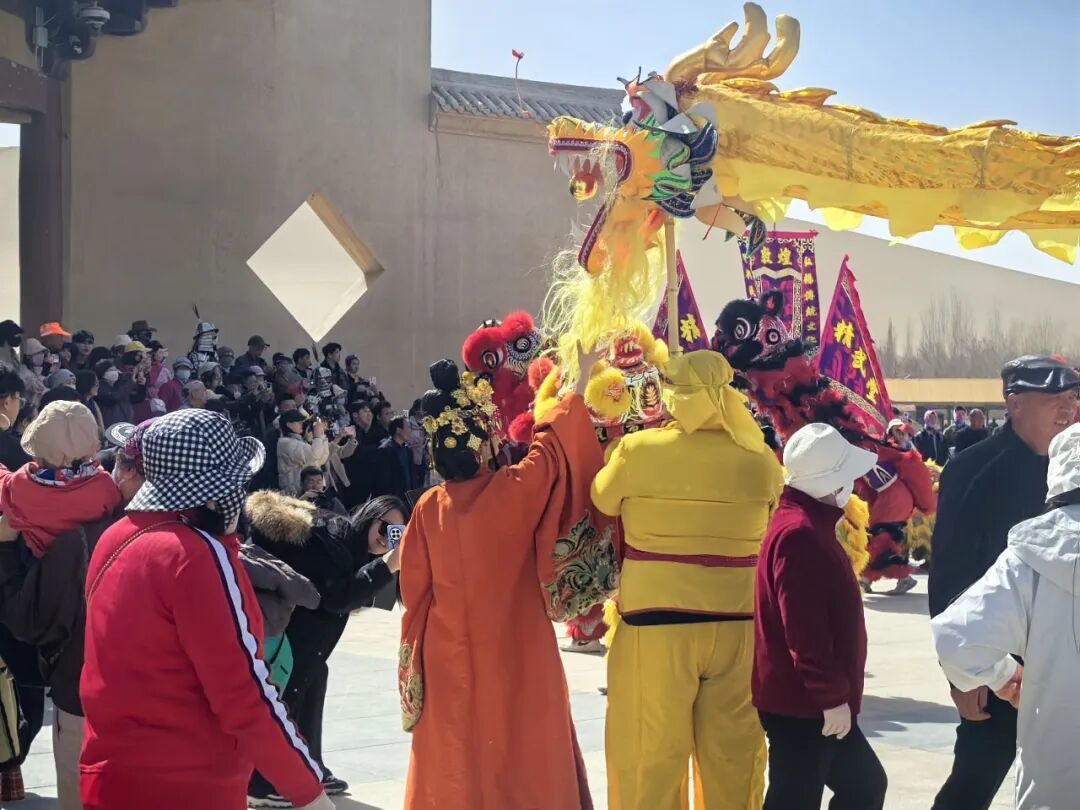 本次活动恰逢春分与二月二龙抬头同日,以迎春、祈福、游园、互动为核心,通过龙狮迎春·迎福展演、“摸龙头·沾龙气”民俗互动、“身康健·一起舞”健身表演、春分祈福、古风游园、节目快闪等多形式内容,为游客打造了一场独具敦煌韵味的民俗游园体验,让市民游客共享双节喜悦。
