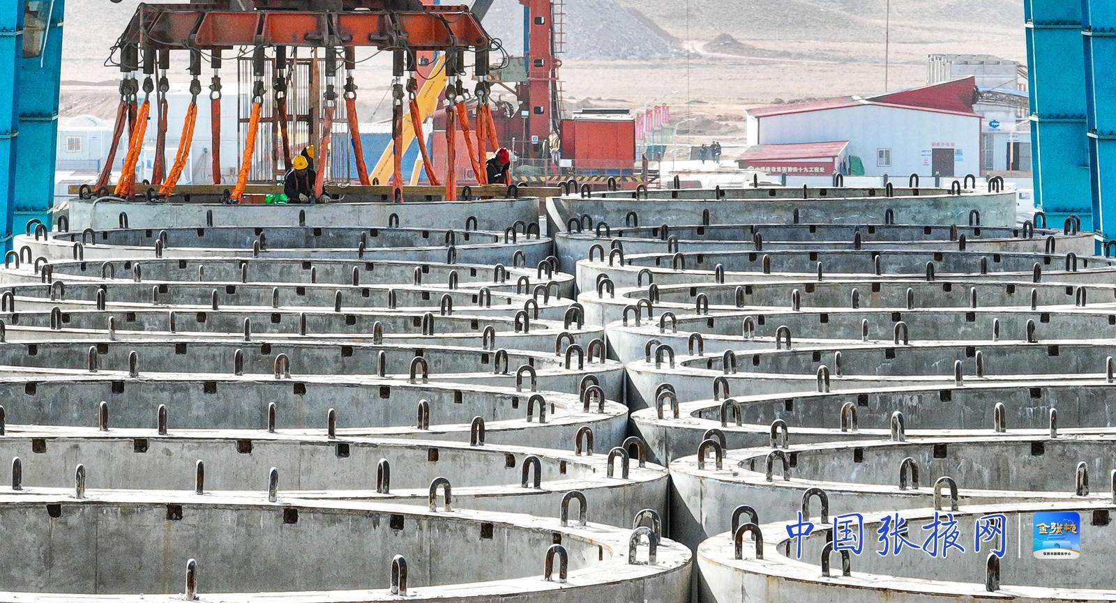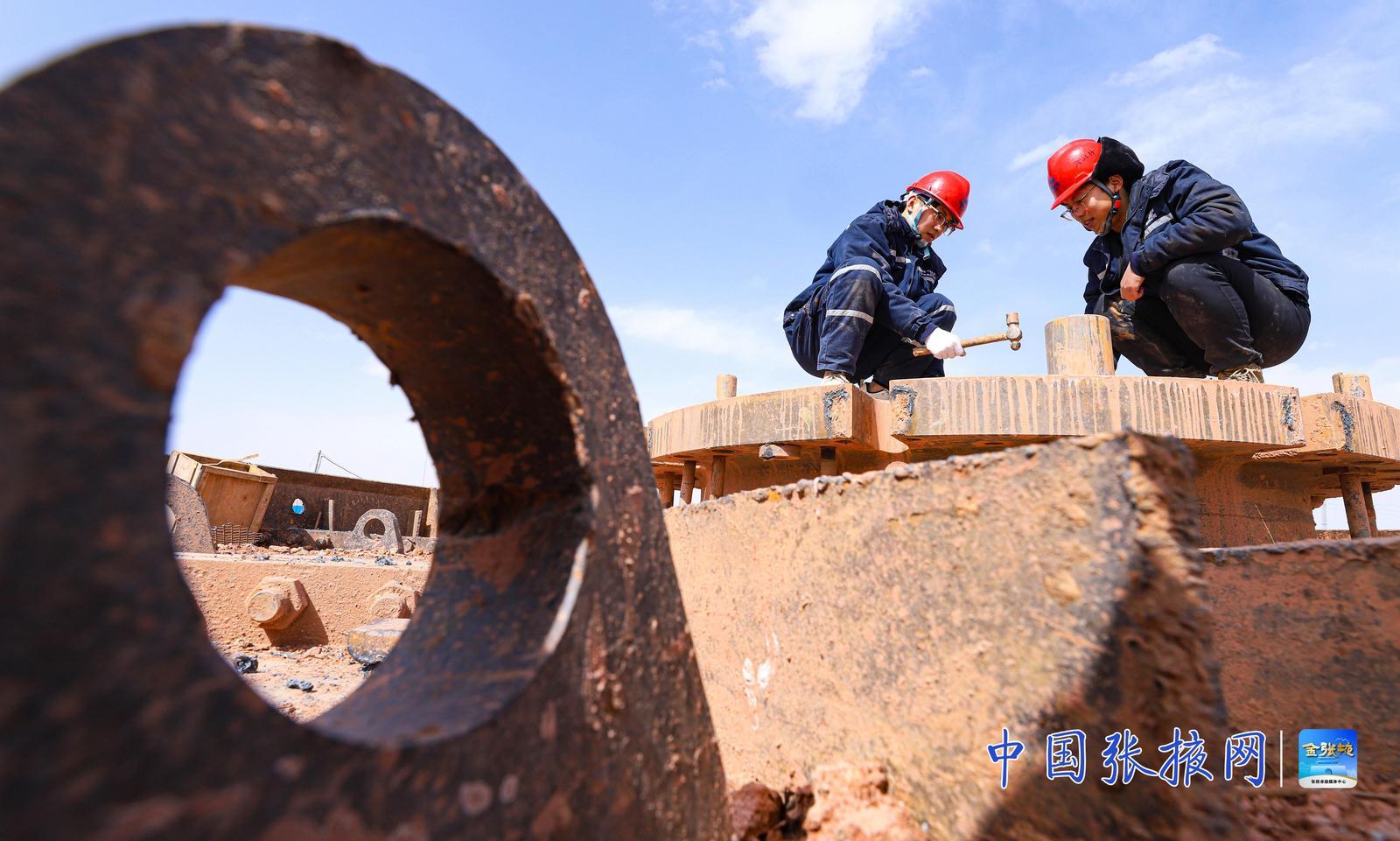 3月19日,张掖市山丹县东水泉矿区青阳煤矿项目回风立井井筒施工工程建设现场,井壁下沉工作正在紧张有序地进行。