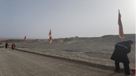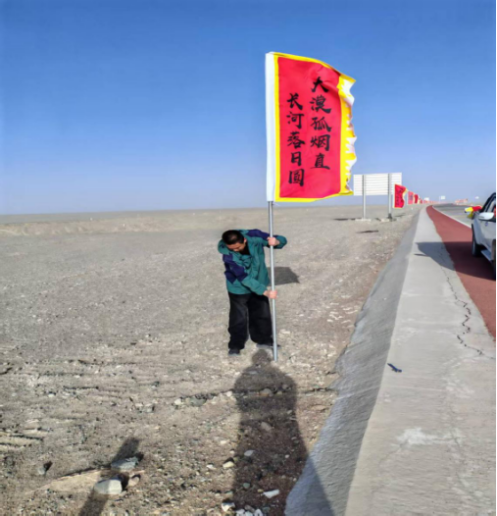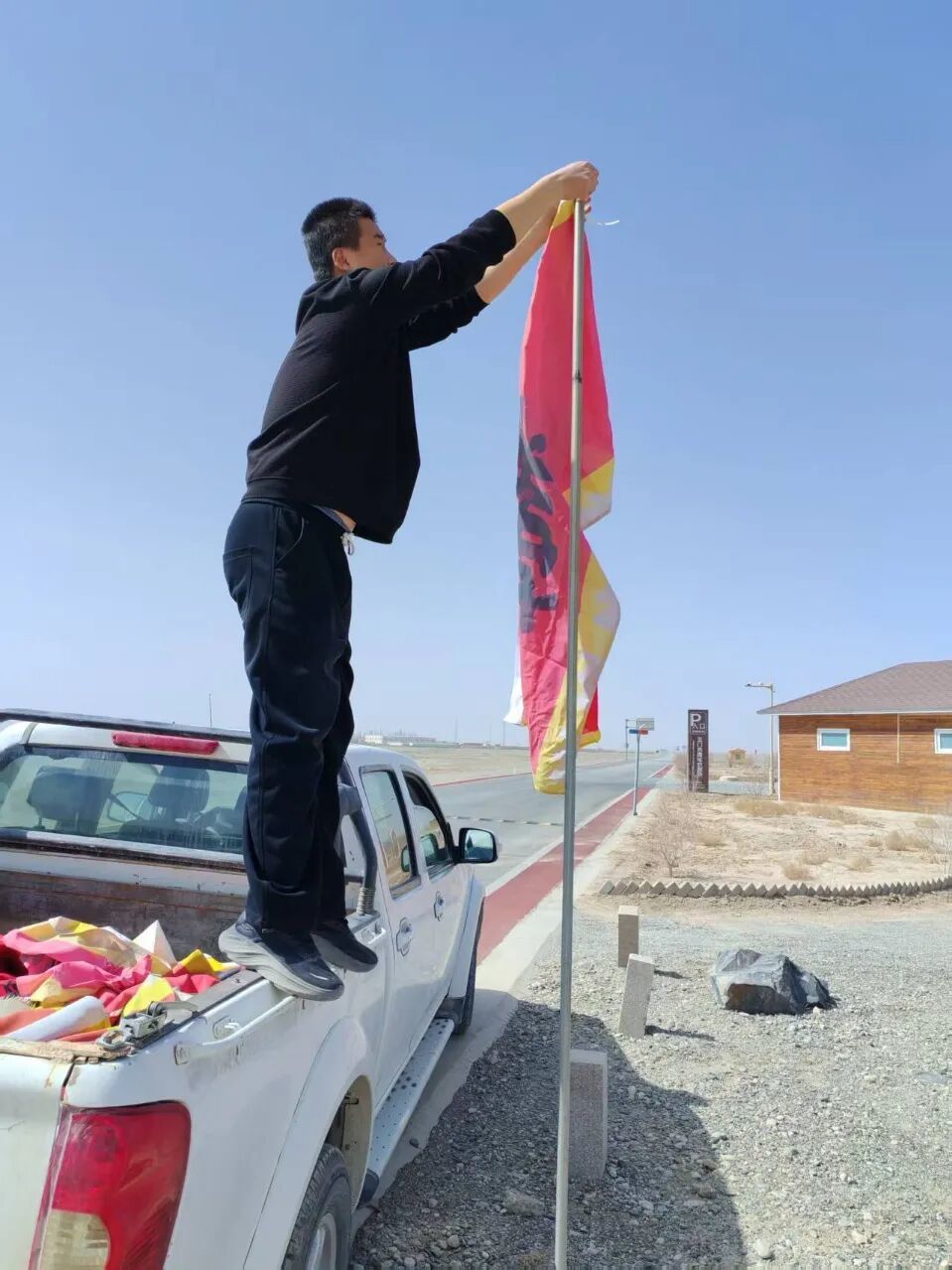 针对戈壁风沙大、日照强、旗帜易破损褪色的地域特点,工作人员逐一检查每一面汉旗的悬挂状态、完好程度,对出现卷边、褪色、破损、松动的汉旗全部拆除更换,同时校准悬挂角度、加固旗杆底座,确保汉旗悬挂端正、舒展挺立。