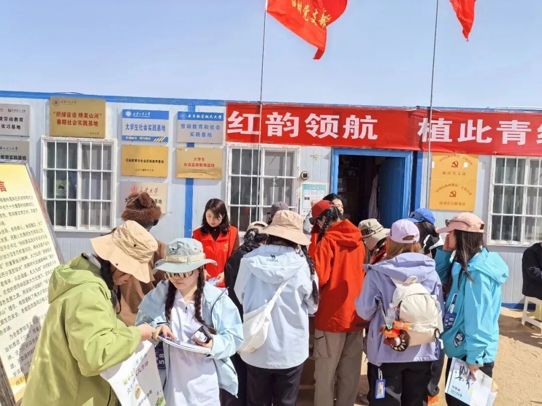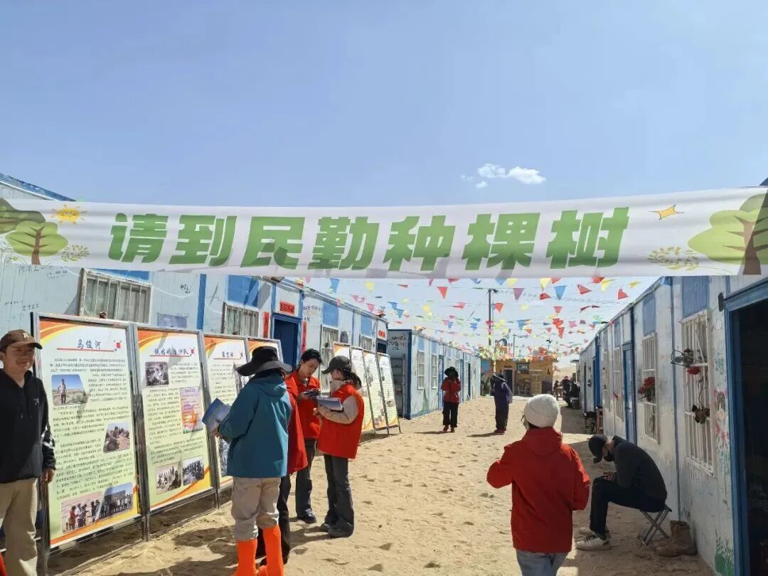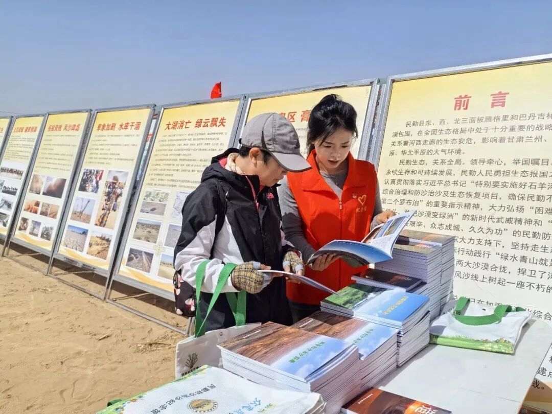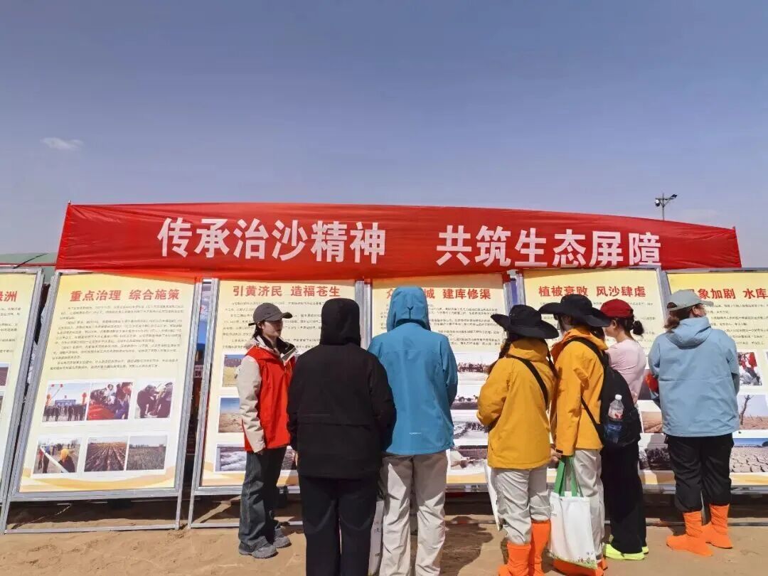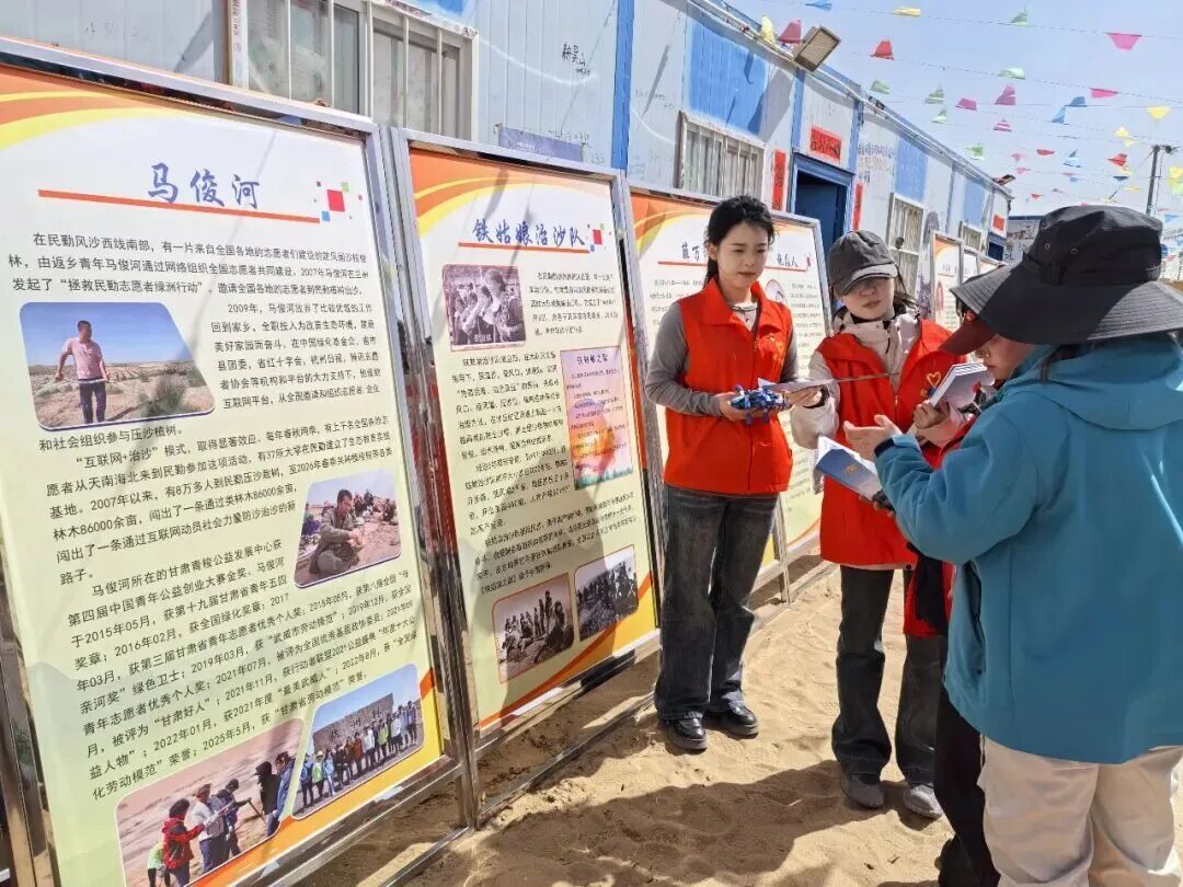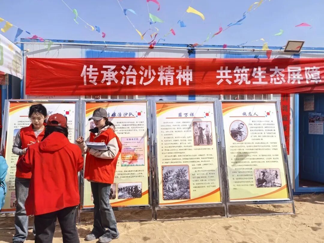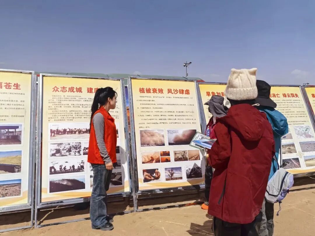 志愿者们驻足观看、交流探讨,公益林变身移动科普课堂,治沙知识与生态理念悄然扎根心间。
