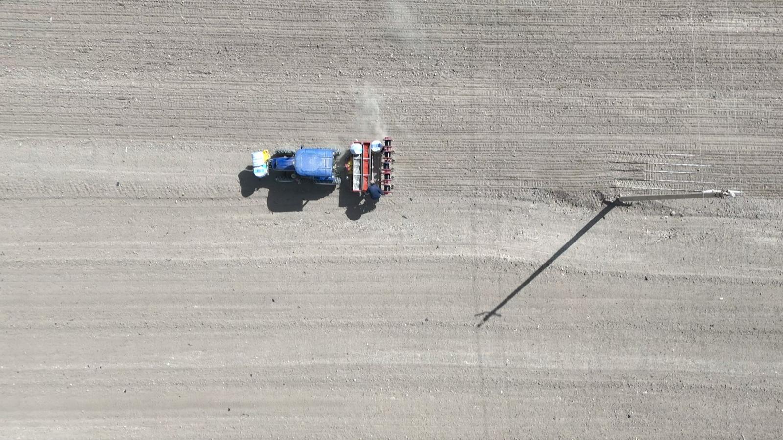 在朱王堡镇梅南村农田里,加装北斗导航辅助驾驶系统的大型播种机匀速作业,无需人工操控方向盘,播种机便能沿预设路线笔直前行,开沟、播种、施肥、铺设滴灌带、覆土一次完成,行距、播种深度精准均匀。