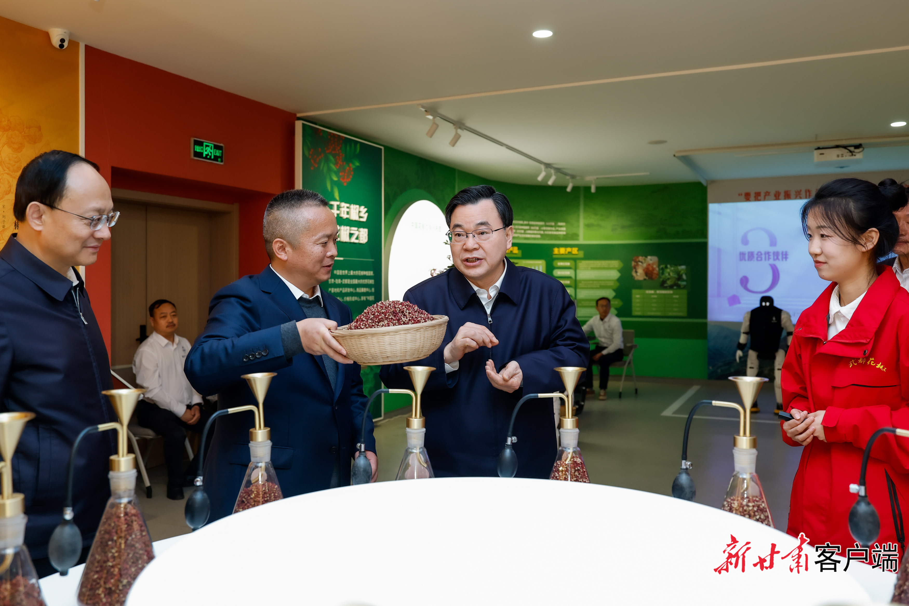 在武都区吉石坝花椒现代产业园和两当县杨店镇豆家坪村有机蔬菜转换基地,胡昌升详细了解数智赋能农业生产、特色产业发展等情况。他强调,要增强开放意识、市场意识,以“农头工尾、粮头食尾、畜头肉尾”为抓手,加快培育和引进农业龙头企业,发展壮大农产品精深加工业,延伸产业链条,提升农业效益。要科学建设农业产业园,合理布局生产加工、科研、仓储物流等功能,引导更多精深加工企业向园区集聚,推动产业聚链成群。要大力发展科技农业、绿色农业、数字农业、质量农业、品牌农业,不断健全联农带农富农机制,促进群众持续增收致富。