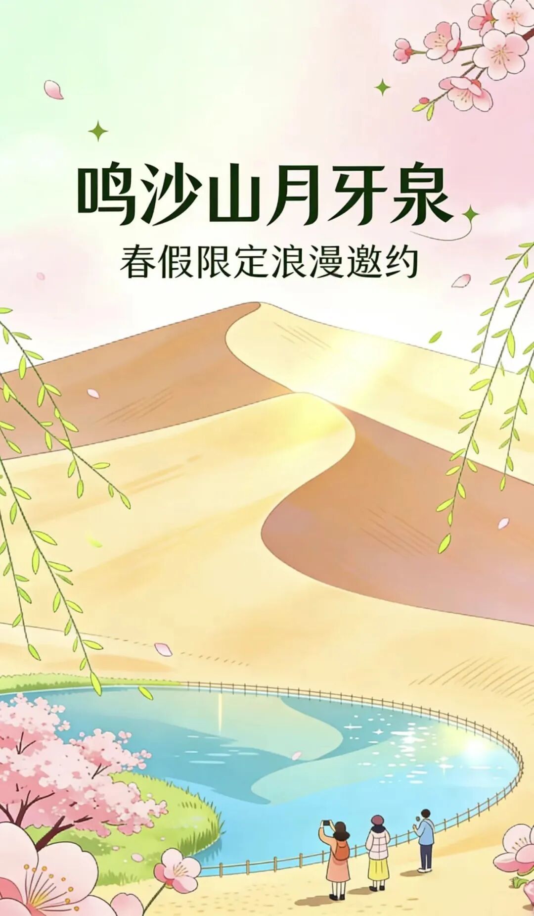 让驼铃为你的假期伴奏,让月牙泉映照你的欢笑。这个春假,逃离日常,奔赴沙海,在鸣沙山月牙泉,写下属于你的春日诗篇。