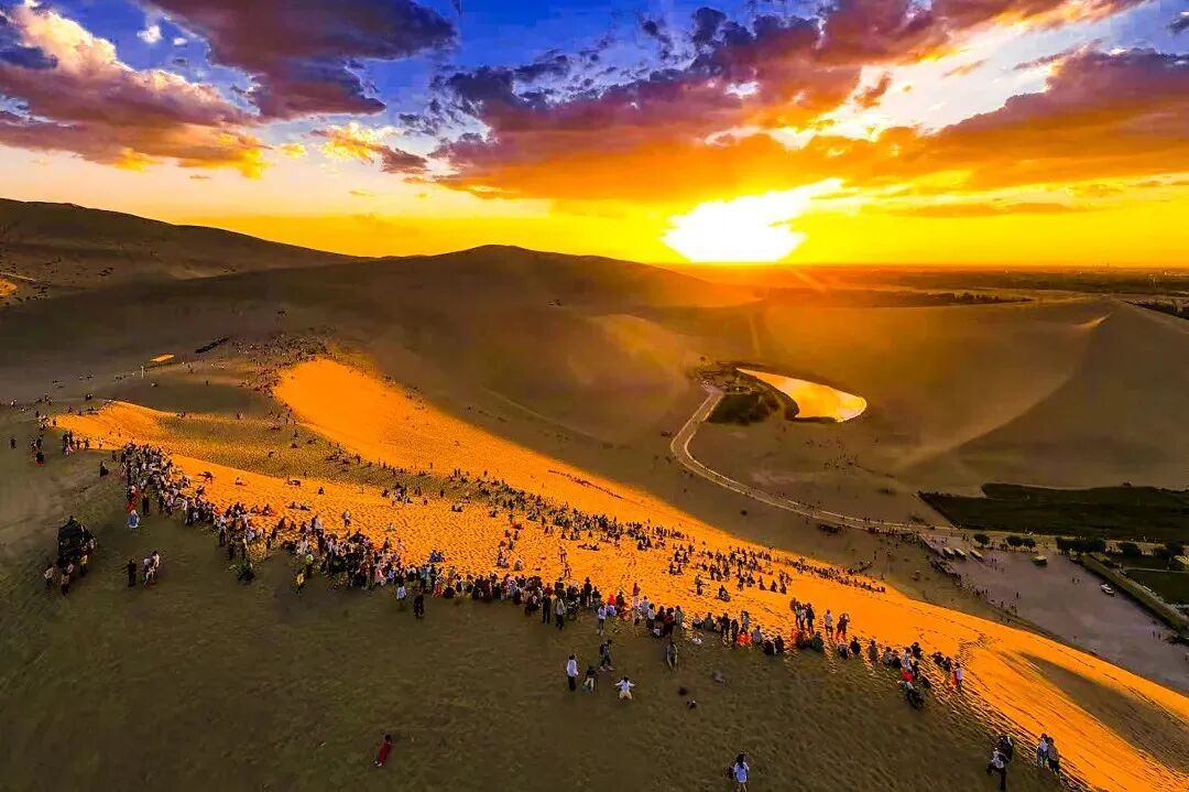 路线精粹:清晨入园,骑骆驼迎接大漠日出 → 登顶主峰,俯瞰金色沙海 → 返回月牙泉畔多角度拍摄 → 体验沙漠摩托、越野车、直升机滑翔机、滑沙等项目 → 傍晚时分,静候沙漠日落 → 若有余力可等待星空浮现。