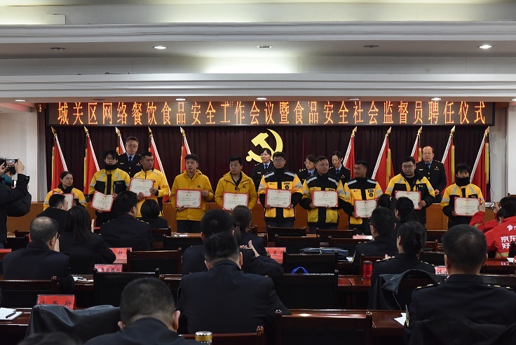 为进一步强化网络餐饮食品安全监管,构建“监管部门+平台+骑手”多元共治格局,精准填补一线监管盲区,切实守护辖区群众“舌尖上的安全”,3月27日下午,城关区市场监管局召开网络餐饮食品安全监督员聘任会议,正式聘任首批外卖骑手担任网络餐饮食品安全社会监督员。