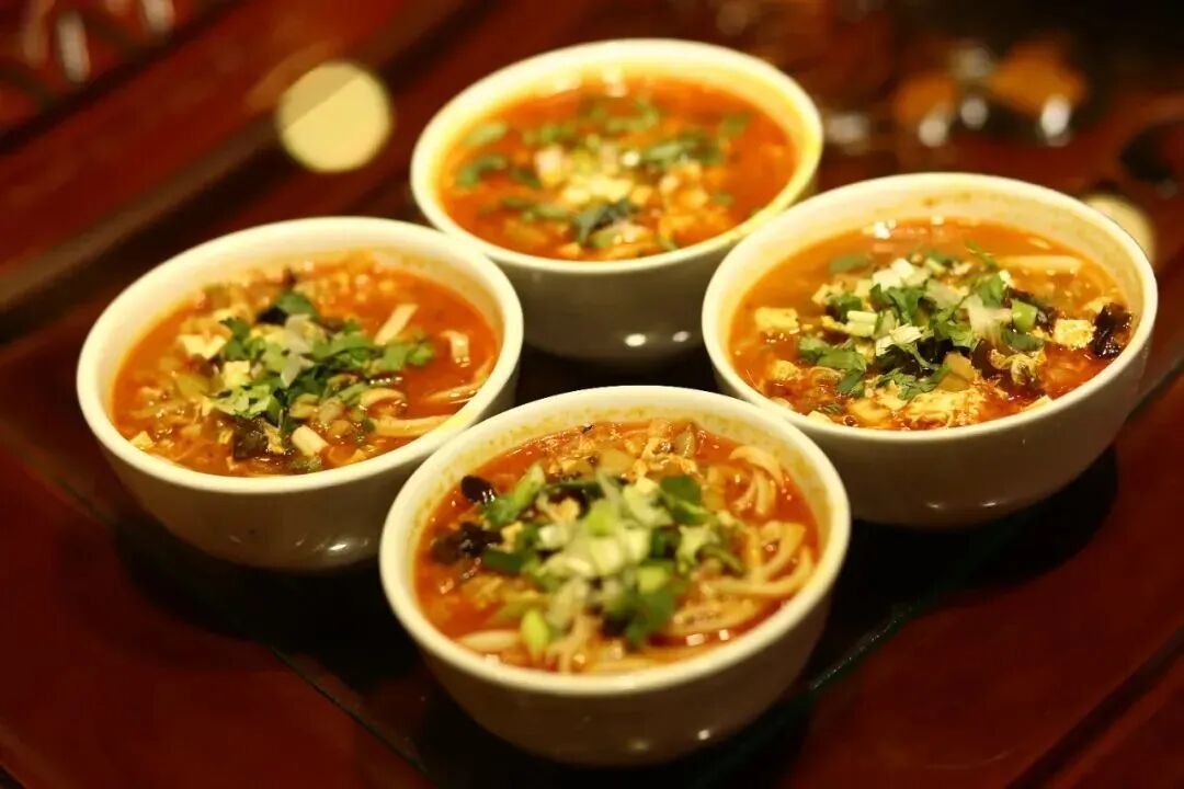 煮熟后浇上羊肉臊子、黄花菜、青菜