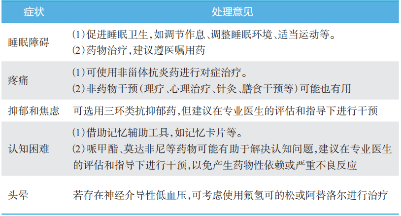 表2 常见症状或合并症的处理意见