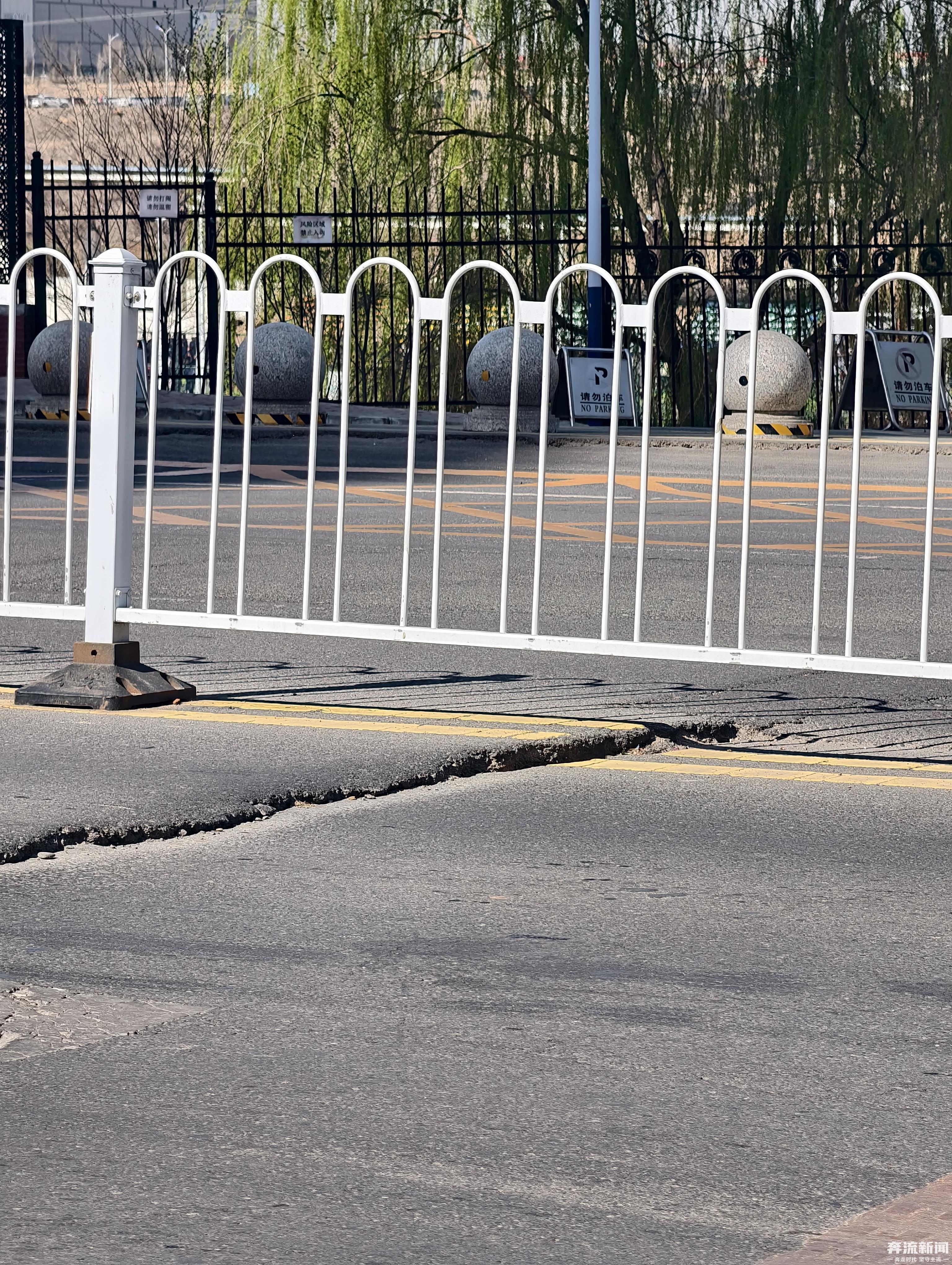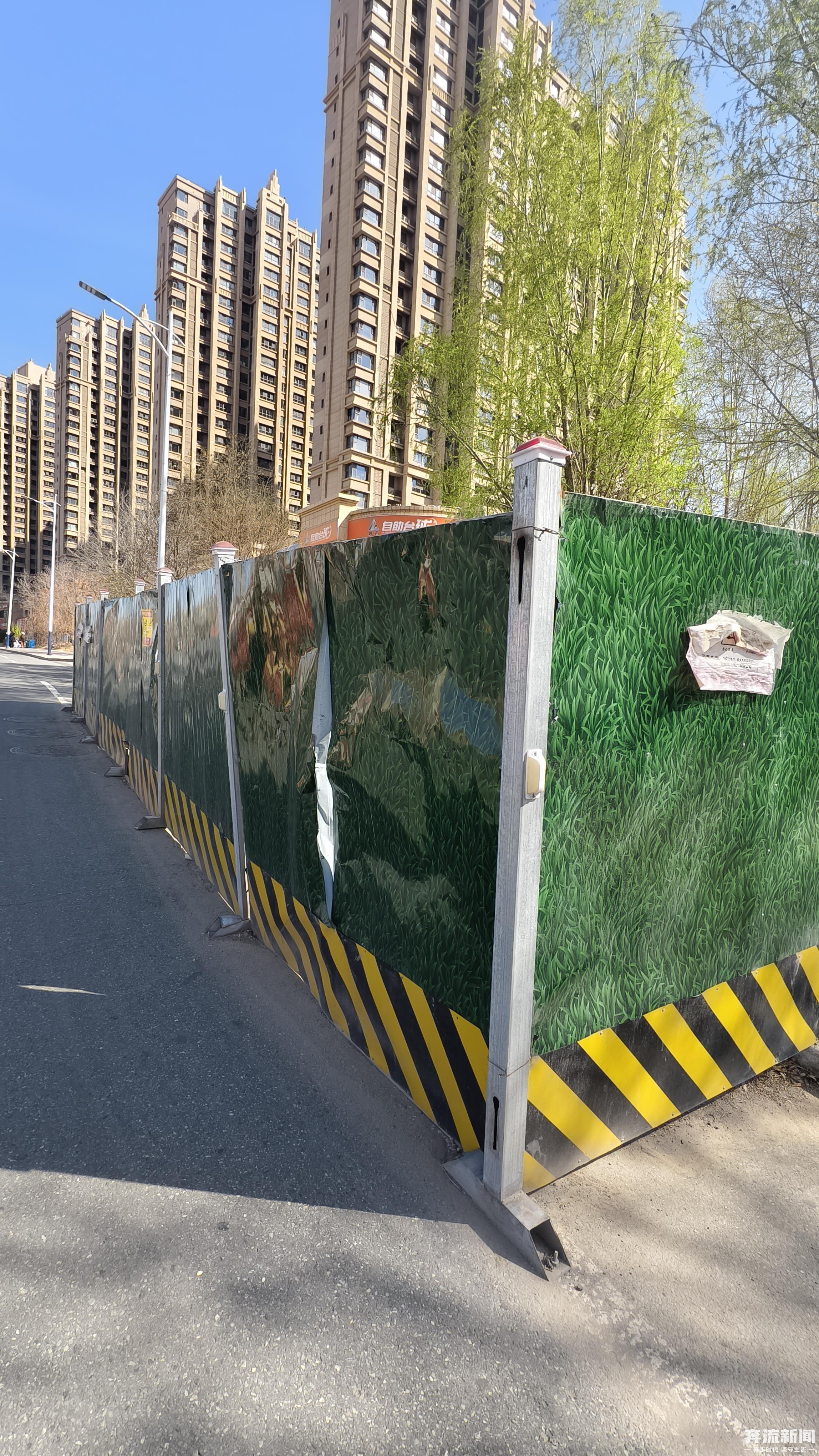青石路是兰州碧桂园片区的核心主干道。当日上午10时,记者在该路段实地踏访发现:由南向北通往碧桂园文璟城的路段,人行道与机动车道衔接处设有大小围挡6处,由北向南方向,碧桂园国际学校附近设有1处围挡。
