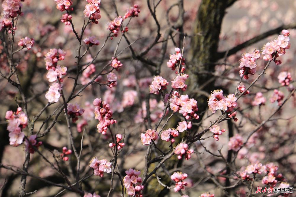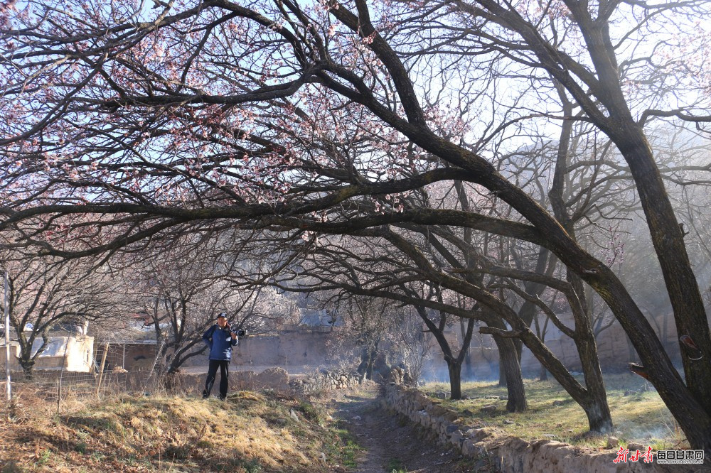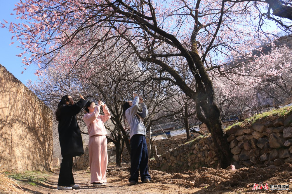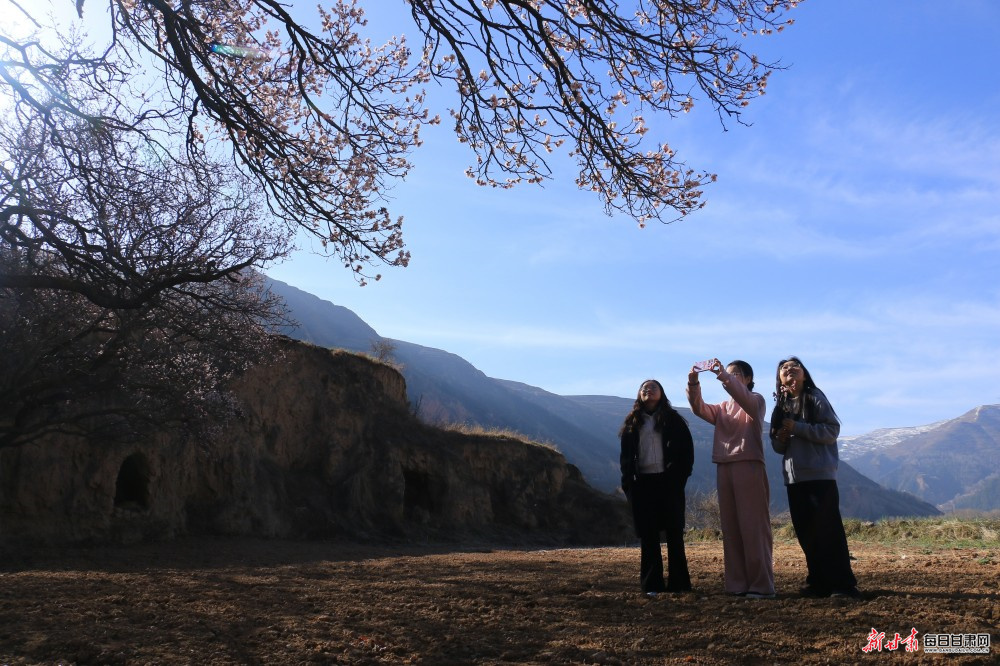 4月1日,定西市岷县北部山区维新镇春意渐浓,施旗村一带的山杏、桃花次第盛开,繁花满枝、美不胜收,吸引周边市县游客纷纷前来踏青赏花、观景拍照。