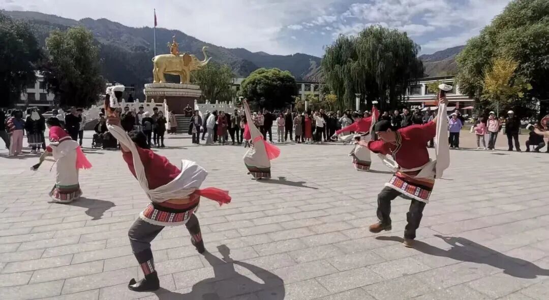 活动内容:在天堂景区核心区域安排多场锅庄及现代舞快闪表演,舞者结合自然山水与民族建筑场景,以灵动舞姿演绎天祝的自然韵律与时代活力。活动采取随机出现、沉浸互动的方式,让游客在不经意间收获艺术惊喜,并通过短视频传播扩大景区影响力。