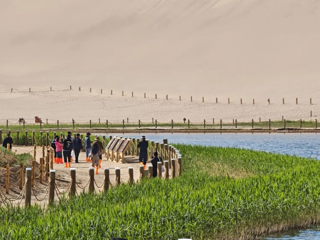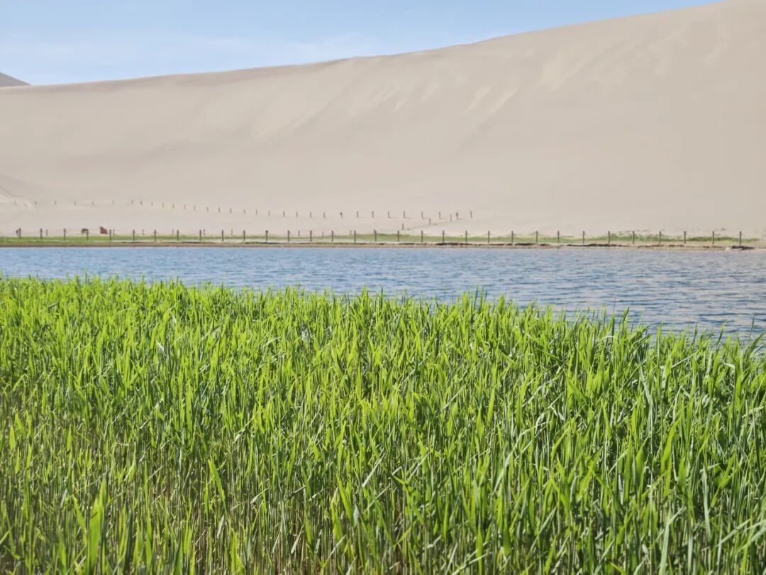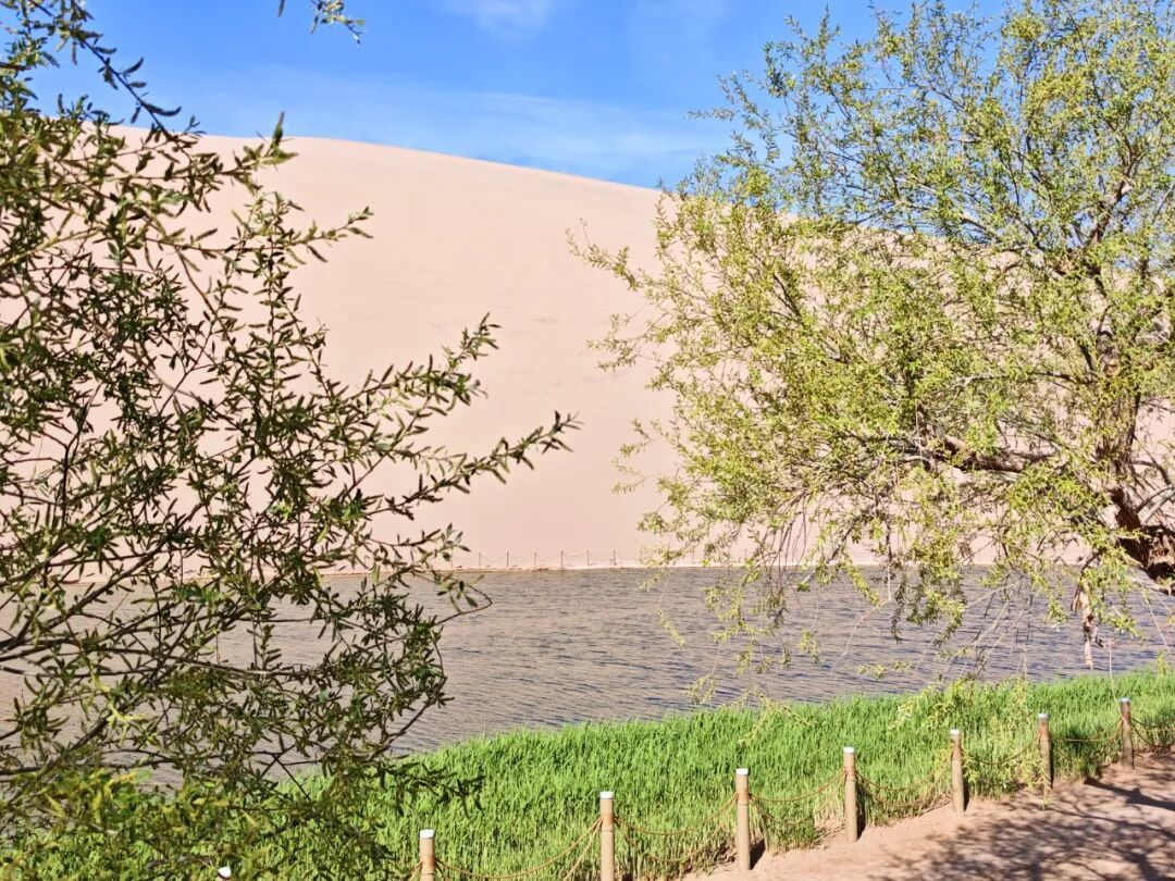 清新的绿是春日最具生机的点缀。月牙泉边芦苇抽芽,嫩黄芽尖舒展成翠绿枝叶,随风摇曳;这抹绿与各色景致相融,让沙泉既有大漠雄浑,又有江南灵动。