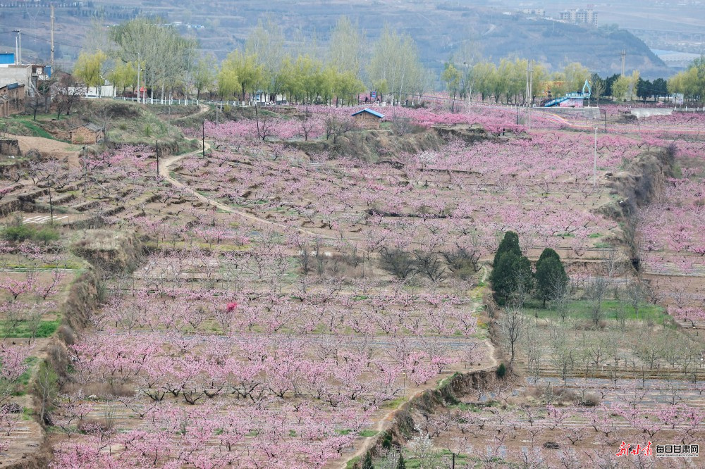 近日,天水秦安县万亩桃林竞相盛开,漫山桃花如云似雪,勾勒出春日里的绝美田园画卷,吸引周边市县游客专程前来踏青赏景、摄影留念。