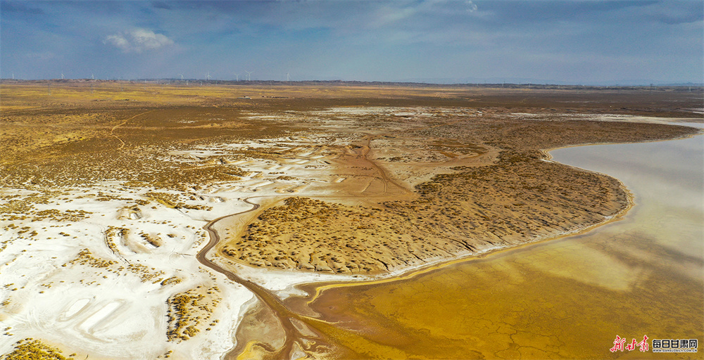 暮春时节,景泰县白墩子盐沼湿地国家公园风光旖旎,色彩斑斓,宛如大自然精心铺展的绝美画卷。
