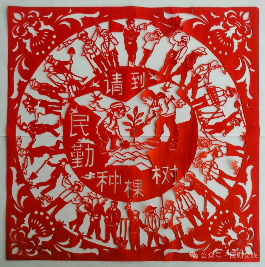 近日,民勤县文旅局推出“跃马沙海 骋怀绿洲”系列网络作品展。市级非遗代表性传承人甘正业创作的“请到民勤种棵树”专题剪纸作品在此次展览中展出。