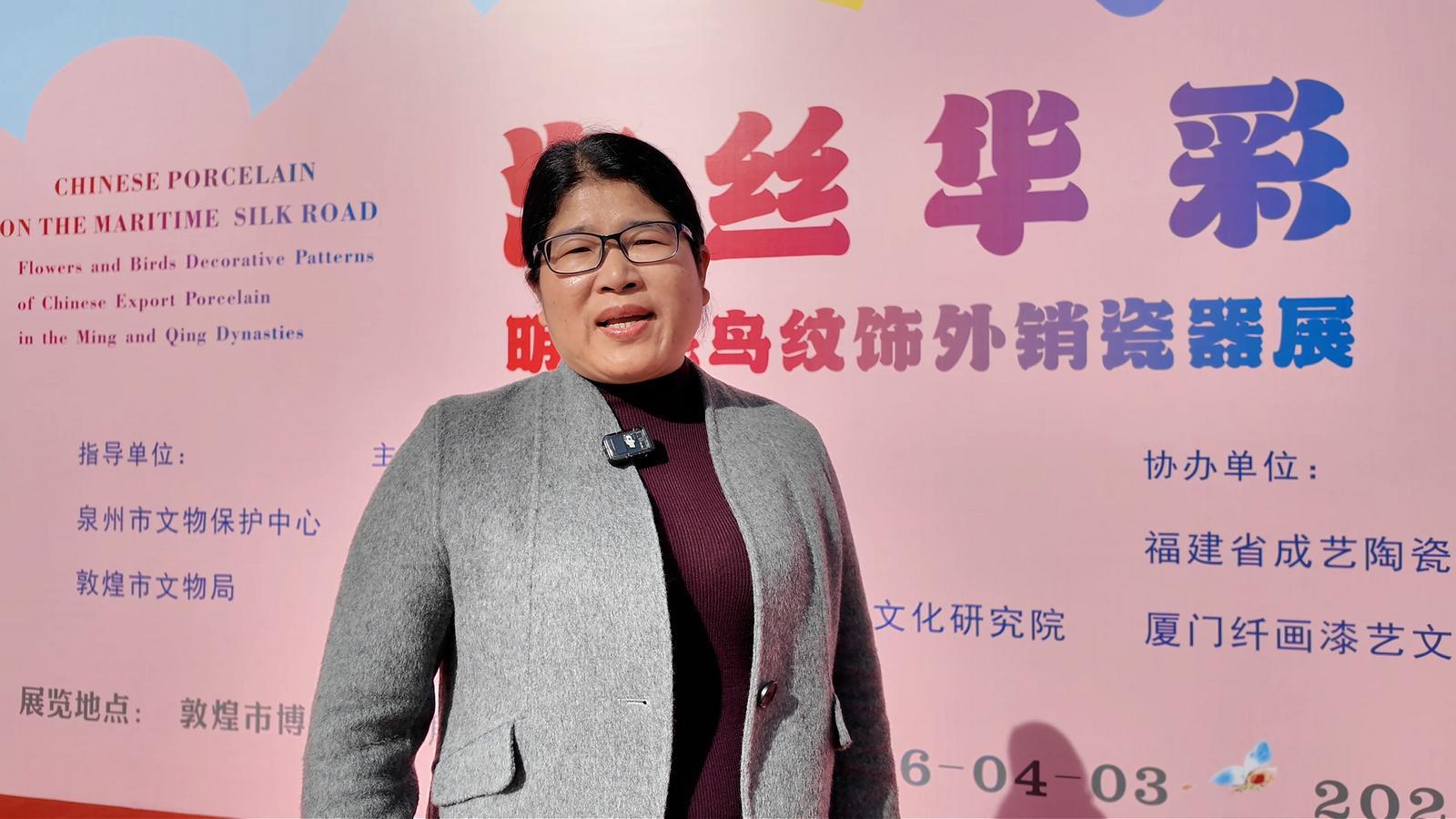 泉州博物馆馆长黄明珍说:“这次我们是从中国东南沿海的福建泉州来到中国西北的敦煌,我们知道敦煌是陆上丝绸之路的一个重要咽喉要塞,在敦煌我们可以看到多元文化交融汇聚的场景,我们泉州是海上丝绸之路的重要起点城市,也是宋元时期中国的世界海洋商贸中心,这两个城市都因为世界文化遗产而声名鹊起。我们把明清的外销陶瓷器带到敦煌,外销瓷是海上丝绸之路当中最重要、最大宗的商品,这里面不仅仅是商品贸易往来,我们更多可以看到当时各国人民交流的一些场景,所以我希望通过这个展览,让敦煌和泉州两地可以加强海上丝绸之路跟陆上丝绸之路的联系,不断推进两地文化交流发展,把我们开放包容的丝路精神走得更深、更实。”