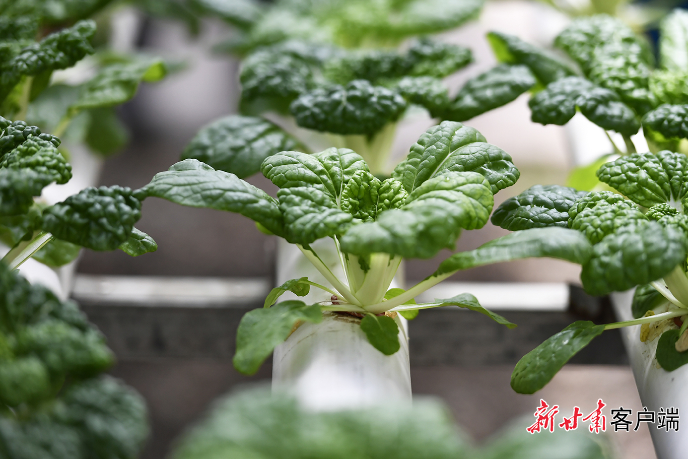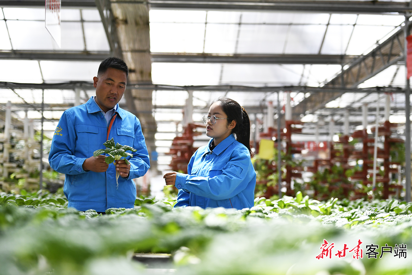 4月13日,在兰州鑫源现代农业科技开发有限公司智能温室大棚内,技术人员正检查水培蔬菜的生长状况,通过无土栽培、智能水肥一体化等现代农业科技手段,这里的高原蔬菜实现了高效、绿色种植。