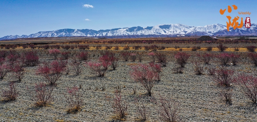 荒漠红花灌木如星火般点缀在砾石间,玫红的花色在苍茫大地里晕开鲜活的色彩。远处雪峰静立,澄澈蓝天为幕,这抹热烈的红,是荒芜里迸发的生机,是景泰大地独有的春日诗行。