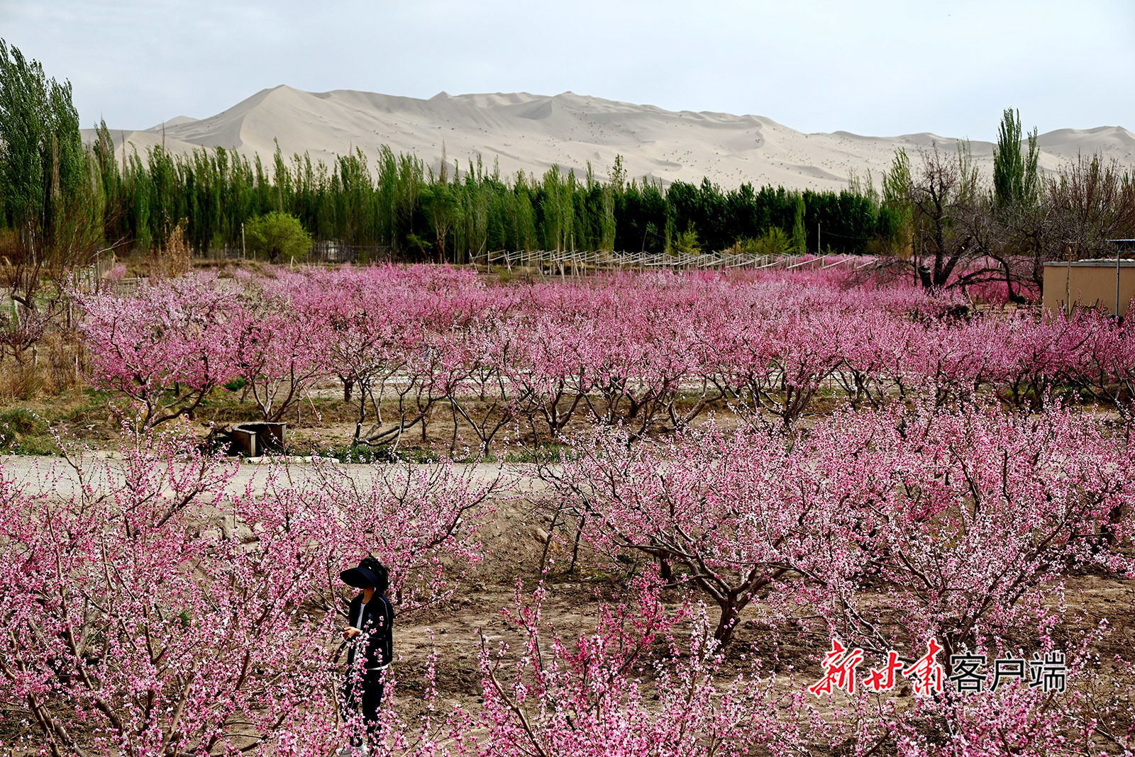 原标题:敦煌: 鸣沙山下桃花俏