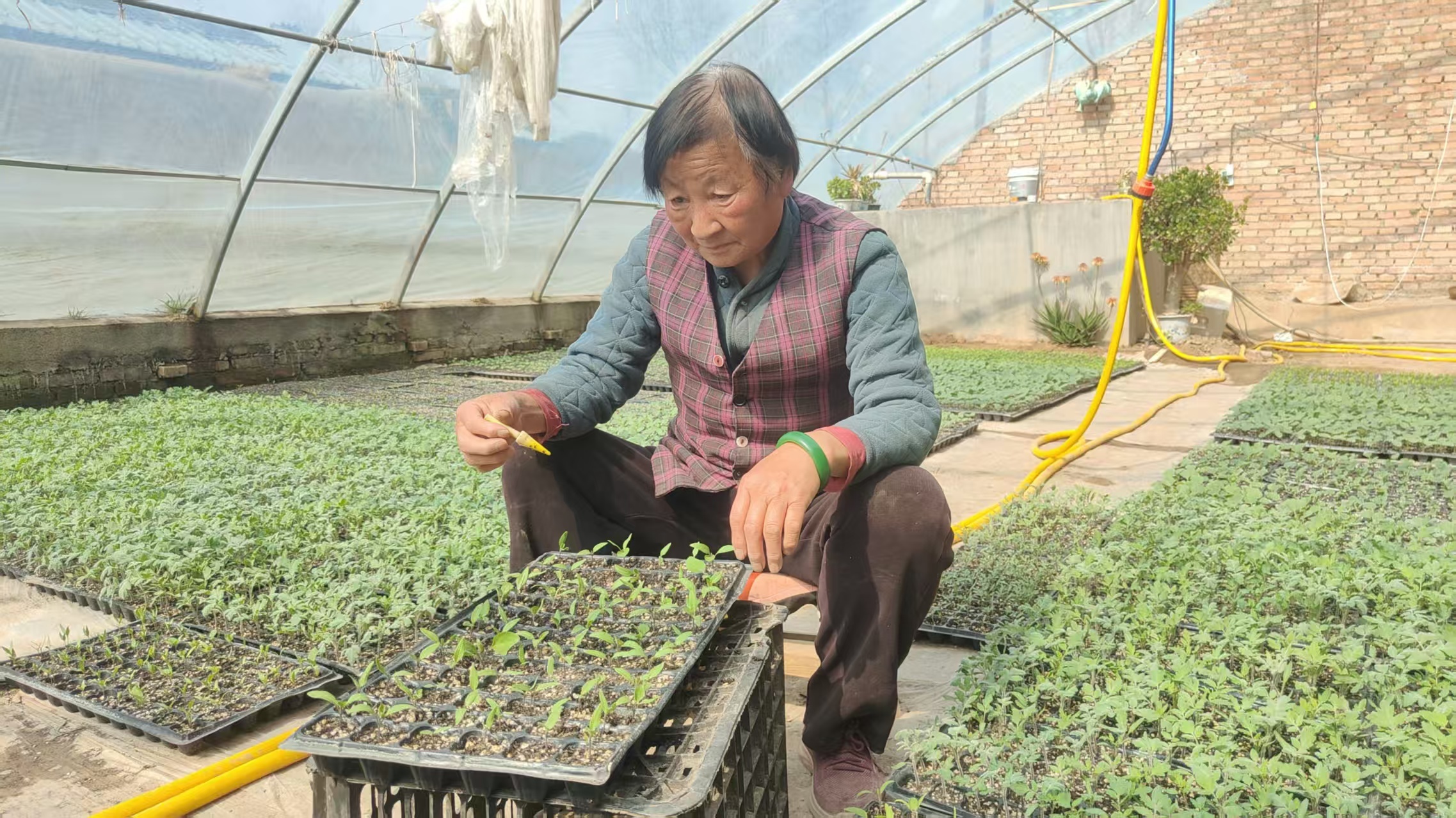 在梁原乡官村村,村党支部书记朱力强穿梭在大棚间,仔细察看菜苗移栽情况、叮嘱农户注意事项。据悉,该村今年依托120座设施蔬菜大棚,重点发展甜瓜种植,52户群众已免费领到甜瓜苗和地膜,抢抓农时全力移栽,目前移栽工作已接近尾声。