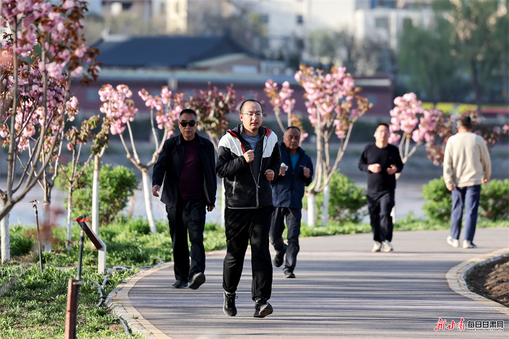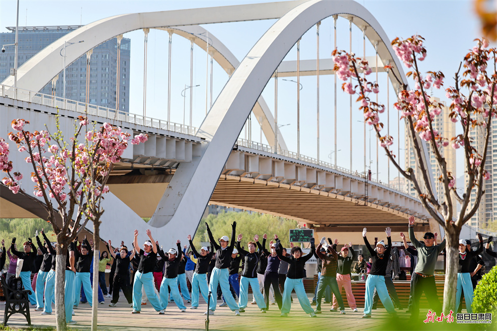 晨曦微露,春风和煦。兰州黄河之滨马拉松公园绿意盎然、景色宜人。河畔步道间,市民迎着晨光慢跑健身、舒展身姿,打太极、跳健身操,尽享河畔生态美景与便捷休闲空间。