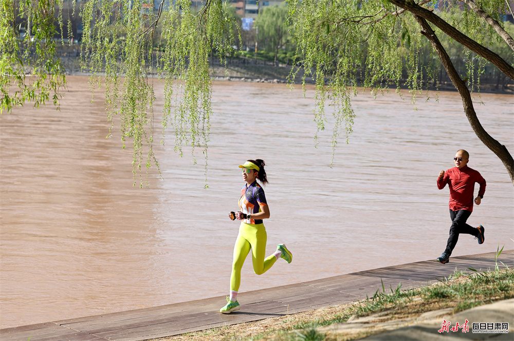 奔流黄河映衬城市风光,全民健身氛围浓厚,健康活力与沿岸景致相映成趣,勾勒出宜居宜游、安逸祥和的金城民生画卷。