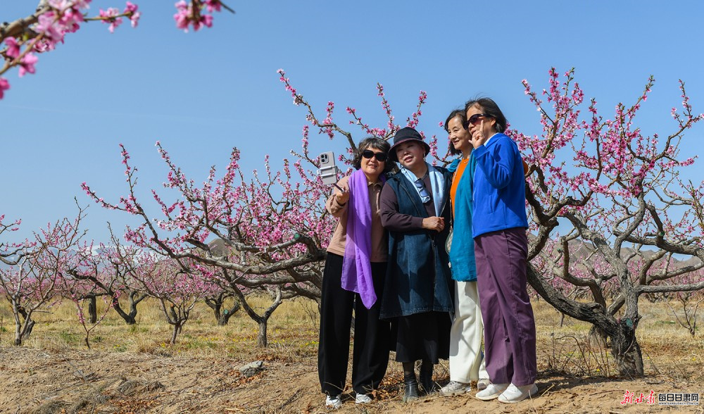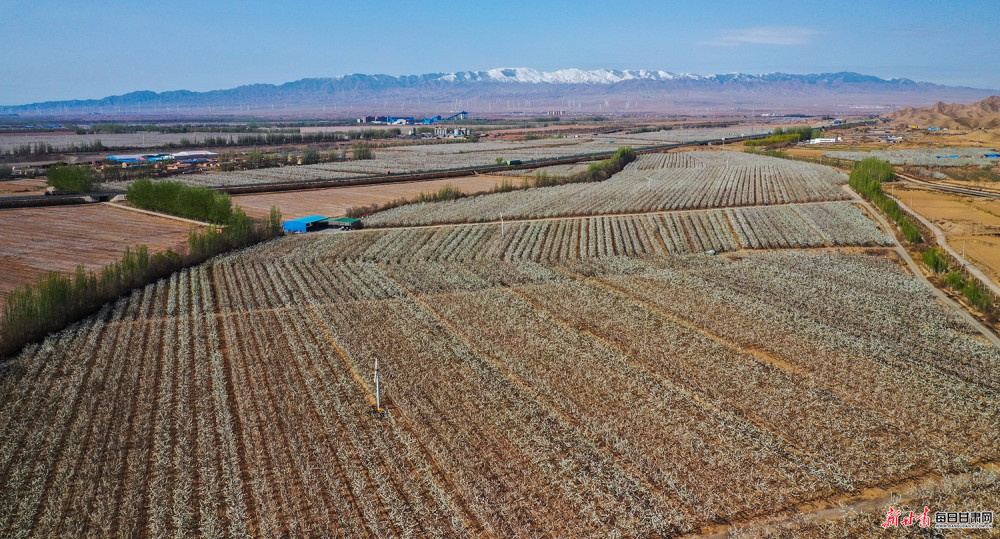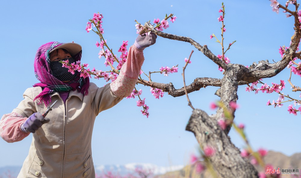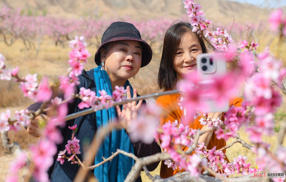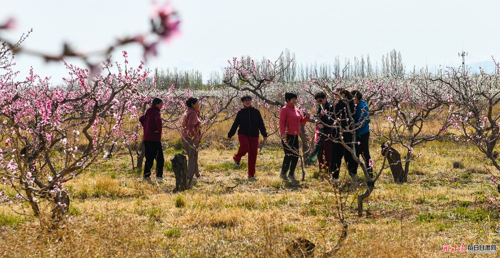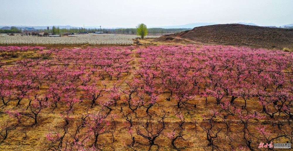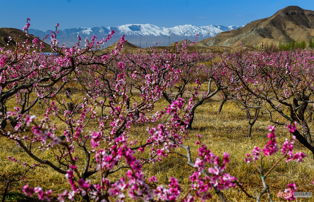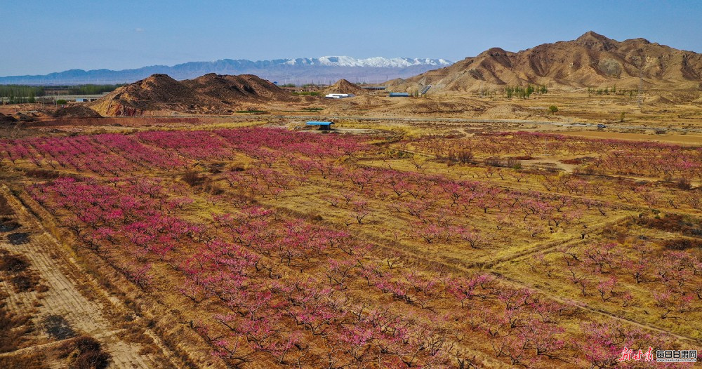 景泰:桃梨竞艳绘春景 雪山映画醉游人
