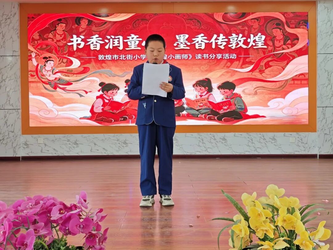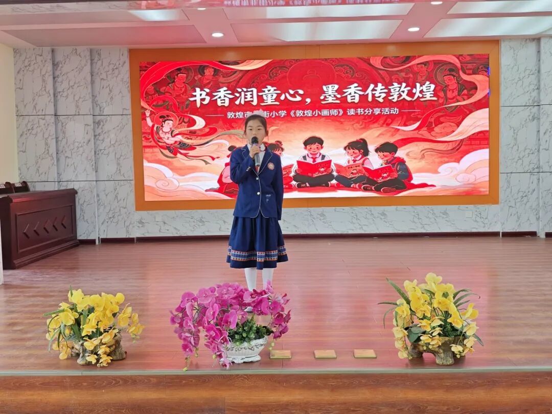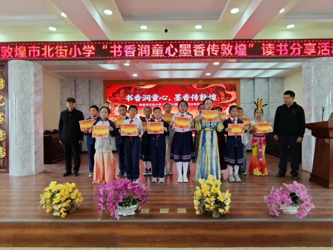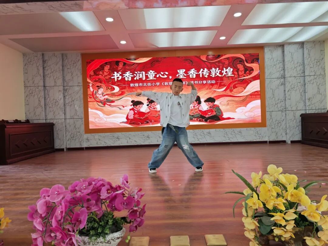 当天,北街小学四年级的孩子们还围绕《敦煌小画师》中的故事展开分享,用稚嫩的语言讲述自己眼中的敦煌小画师。从小画师的故事中,孩子们不仅感悟到莫高精神,也在其中学会了坚持、认真等品质。在书香阅读与艺术体验中,孩子们还为大家带来了敦煌舞、古筝演奏、现代舞等才艺展示,激发了青少年对传统文化的热爱,实现”以书润心、以文化人”的目标。经过精彩的分享,评委们评选出一等奖1名、二等奖3名、三等奖10名,并表彰了优秀分享者与表演者。