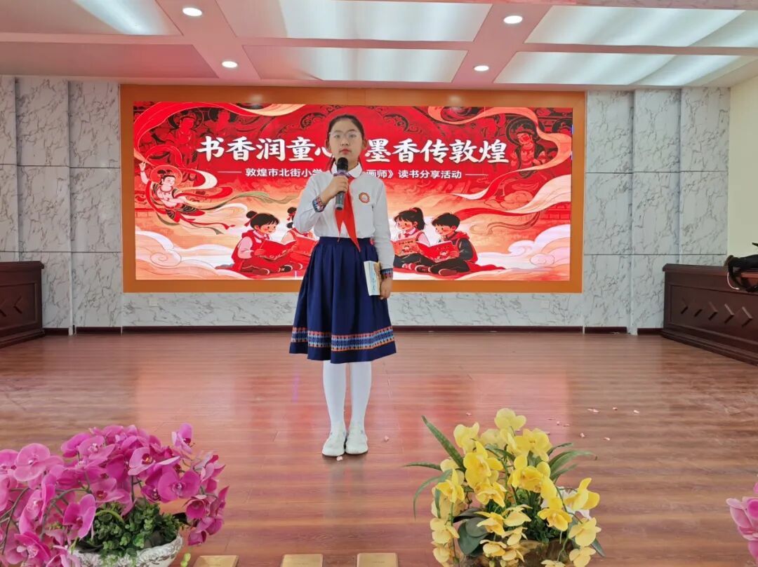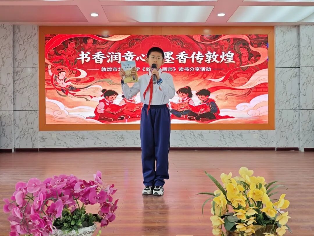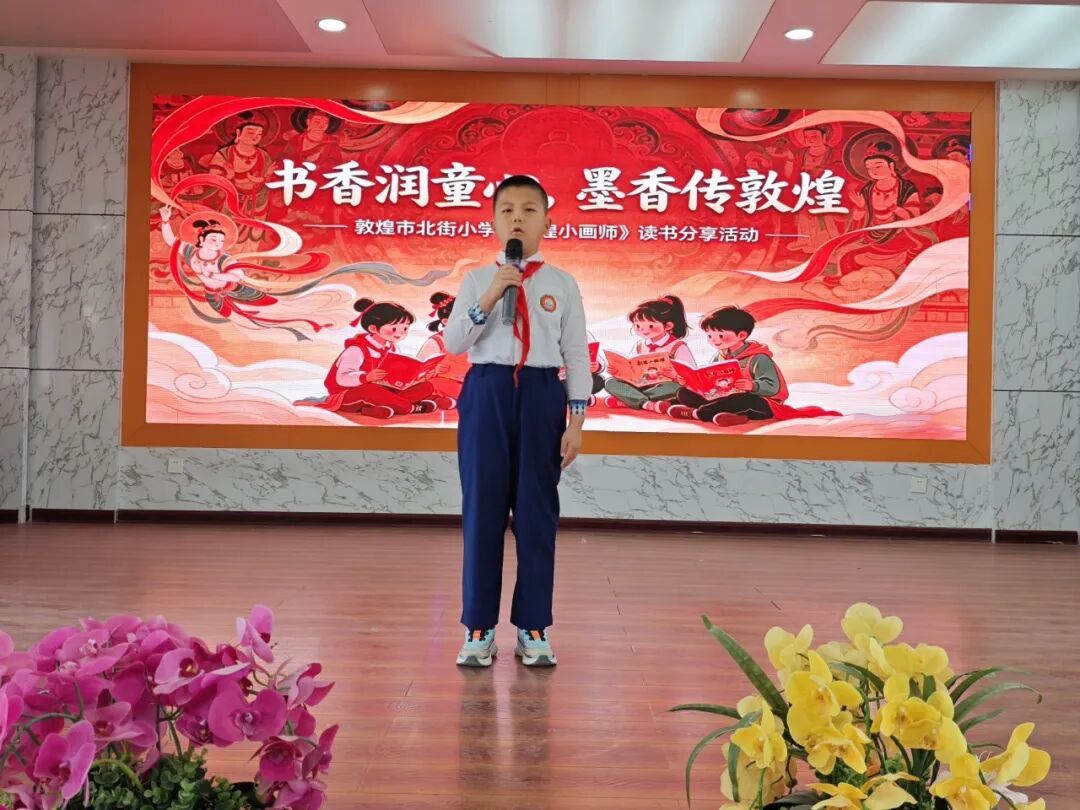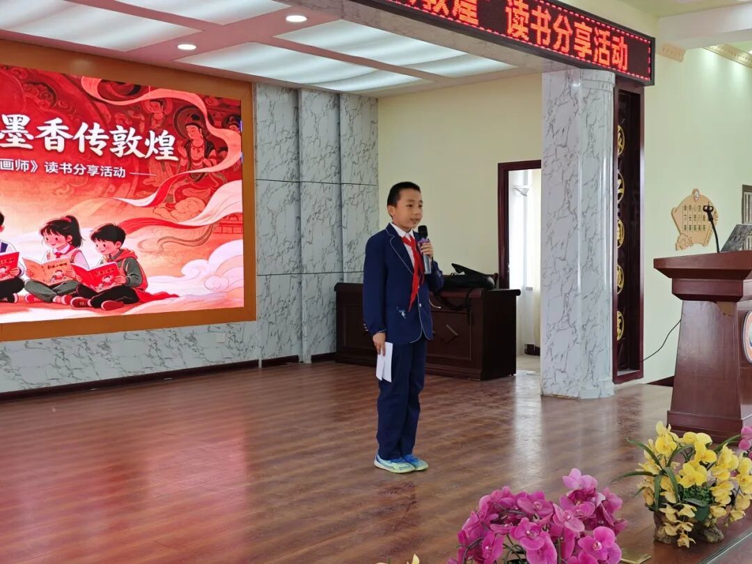 当天,北街小学四年级的孩子们还围绕《敦煌小画师》中的故事展开分享,用稚嫩的语言讲述自己眼中的敦煌小画师。从小画师的故事中,孩子们不仅感悟到莫高精神,也在其中学会了坚持、认真等品质。在书香阅读与艺术体验中,孩子们还为大家带来了敦煌舞、古筝演奏、现代舞等才艺展示,激发了青少年对传统文化的热爱,实现”以书润心、以文化人”的目标。经过精彩的分享,评委们评选出一等奖1名、二等奖3名、三等奖10名,并表彰了优秀分享者与表演者。