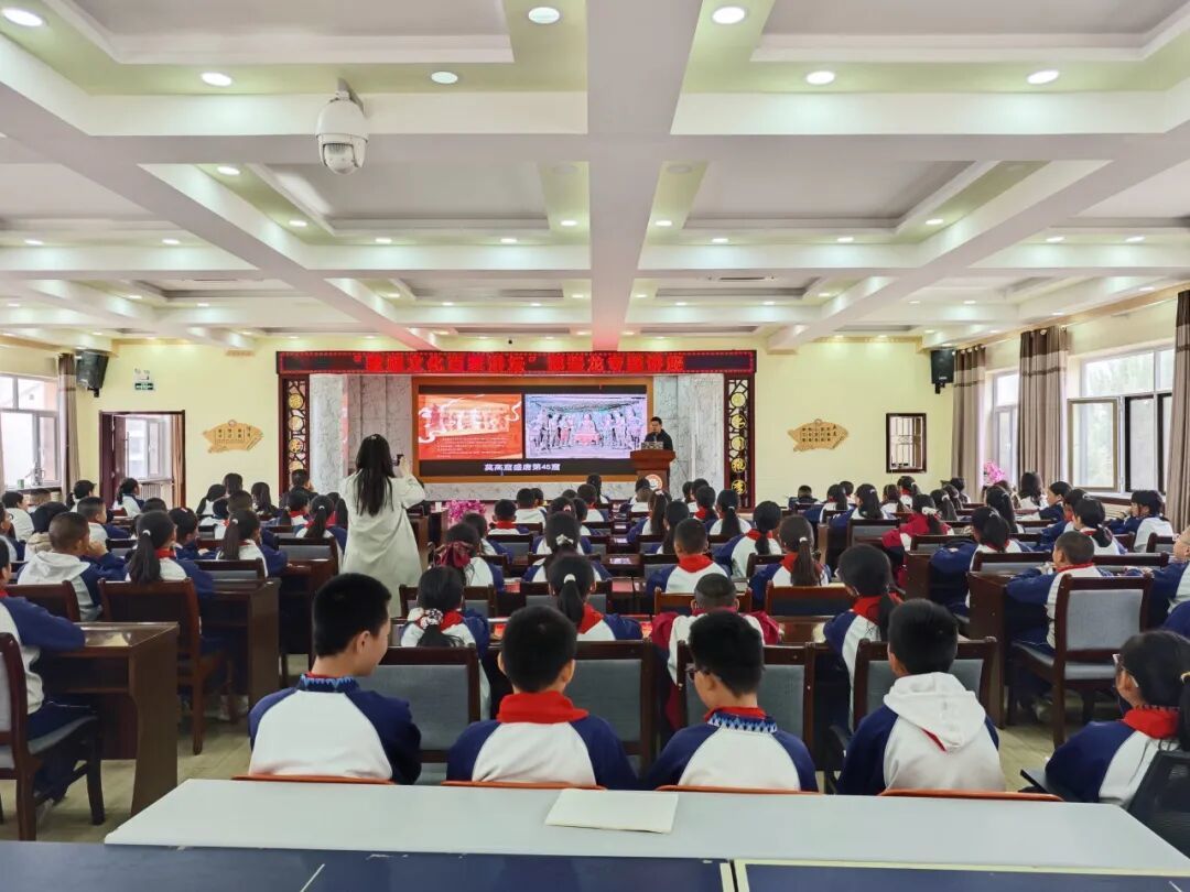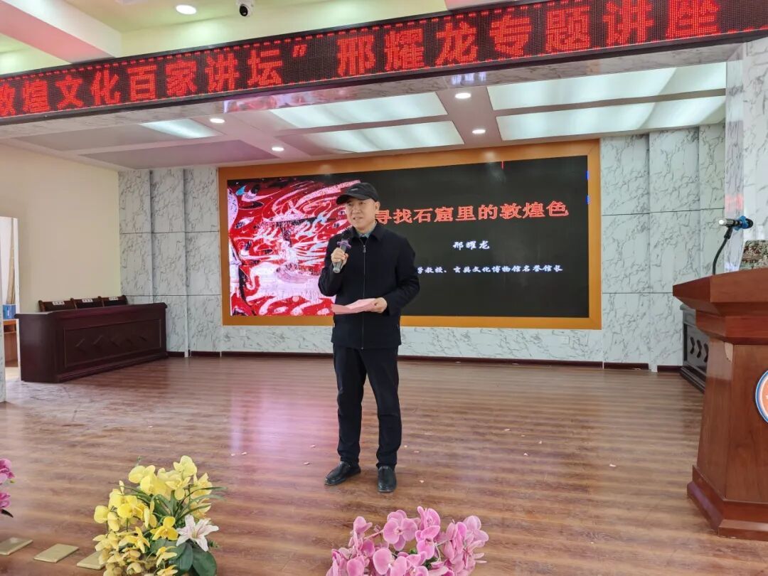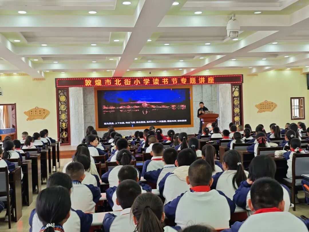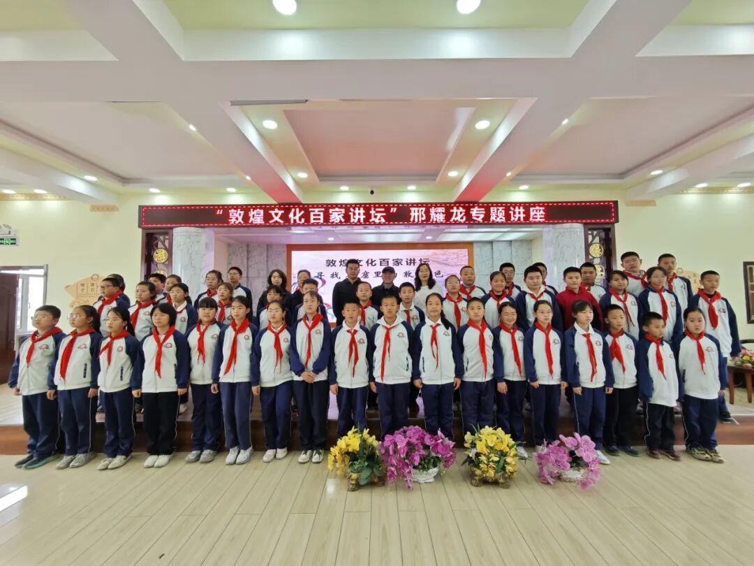 当天下午,敦煌文化百家讲坛活动正式开启进校园模式。敦煌市图书馆馆长方建荣在活动开始致辞,他说,今天在北街小学我们共同开启“敦煌文化百家讲坛”专题讲座,邢老师将以“寻找石窟里的敦煌色”为主题,带领同学们穿越千年时空,探寻石窟壁画与经典文学的奇妙联结,品味敦煌色彩的艺术魅力。这不仅是一场学术盛宴,更是一次文化寻根、精神洗礼,让我们在聆听中感受敦煌艺术的博大精深,在探寻中理解丝路文明的交流融合。希望以本次讲座为契机,进一步激发全市中小学生热爱敦煌、认识敦煌、宣传敦煌的热情,让更多人成为敦煌文化的守护者、传承者、传播者。希望各位师生珍惜学习机会,静心聆听、认真思考,从敦煌文化中汲取智慧力量,把敦煌文化带进校园、植入童心,让青少年从小感受传统文化魅力,让敦煌文脉在代代相传中绵延不绝。