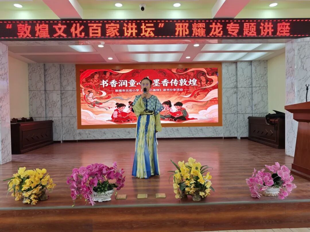 为深耕敦煌文化传承,让千年石窟艺术走进大众、浸润童心。4月20日下午,市图书馆【敦煌文化百家讲坛】特邀敦煌学学者、历史作家邢耀龙走进市北街小学,为学校师生带来《寻找石窟里的敦煌色》专题讲座,同步还举办了“书香润童心 墨香传敦煌”《敦煌小画师》分享会。两场活动一脉相承,以学术讲解与童趣互动相结合的形式,解锁敦煌色彩密码,搭建起传统文化与青少年之间的沟通桥梁,让敦煌美学在书香与墨香中薪火相传。