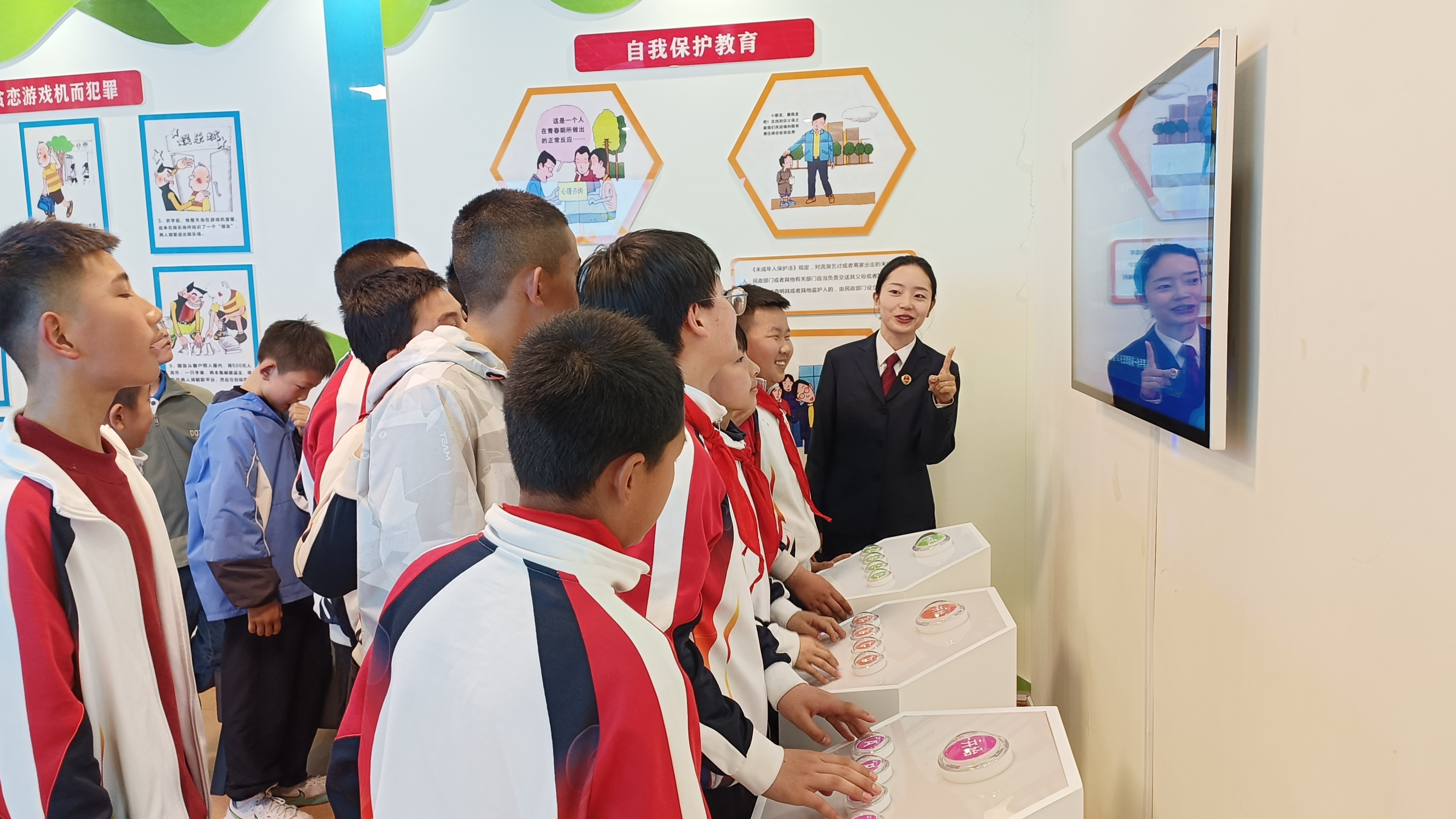 随后,在干警的引导下,师生们实地参观“灵心未你”未成年人检察工作室,详细了解工作室在未成年人司法救助、心理疏导、法治教育、权益维护等方面的工作举措。现场,同学们踊跃参与法治抢答系统互动体验,通过趣味答题、案例讲解等形式,系统学习预防性侵害、防范校园欺凌等未成年人自护知识,并完成专项法治知识测评,进一步巩固了法治理念与安全常识的认知基础。