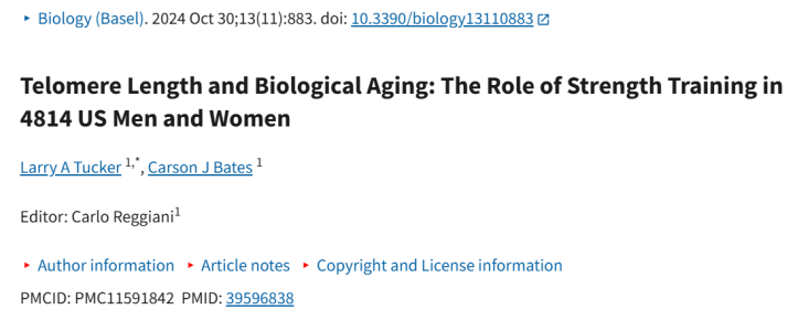 可一项重磅研究颠覆了所有人的认知,《运动医学》期刊发表的论文《Telomere Length and Biological Aging:The Role of Strength Training in 4814 US Men and Women》,依托4814名美国男女的追踪数据证实: