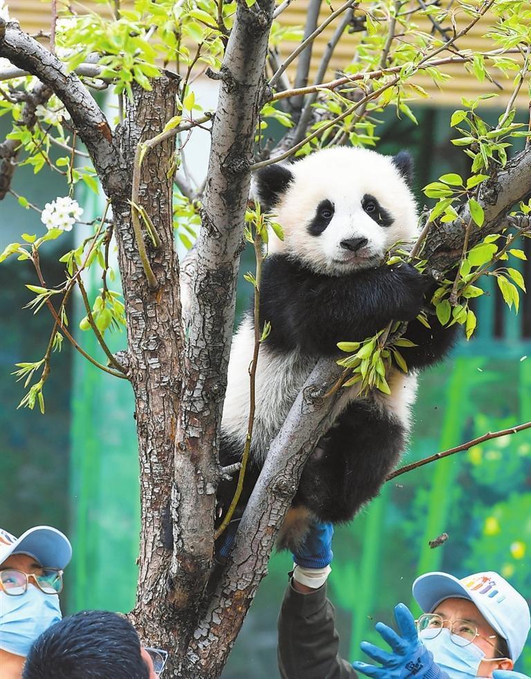 4月25日,甘肃本土诞生的首只人工圈养大熊猫幼仔“曼兰崽”在兰州野生动物园正式与公众见面。新甘肃·甘肃日报记者 裴强