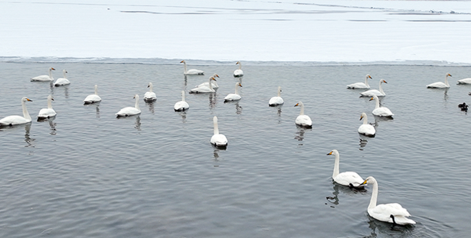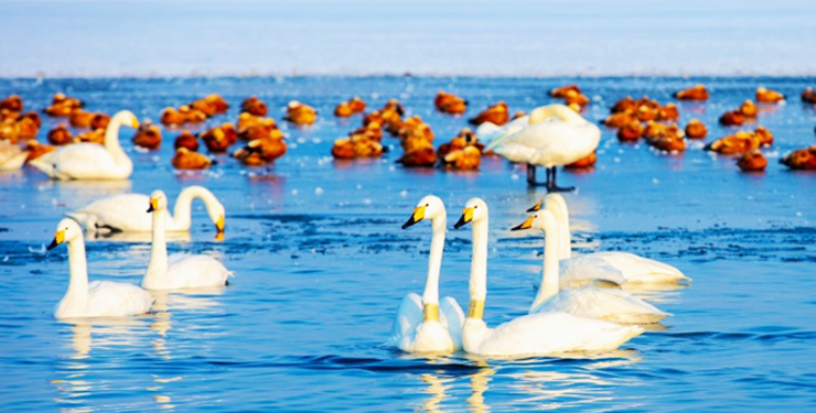 甘肃张掖黑河大天鹅越冬画面超美
