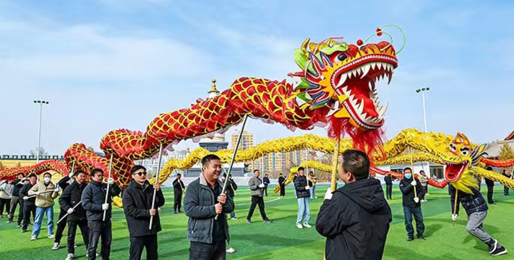 甘肃山丹人耍龙舞狮迎新春